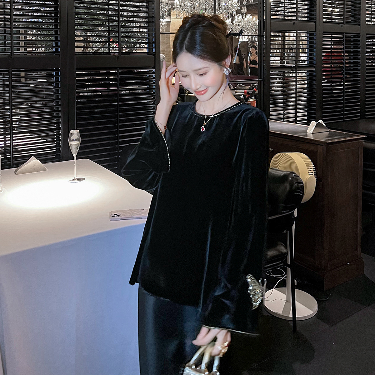 新中式国风丝绒衬衫上衣女2025春