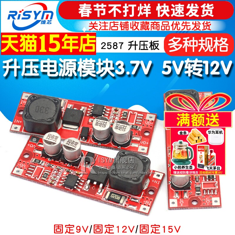 升压电源模块 3.7V 5V转12V 9V 15V DC-DC LM2577 2587 升压板