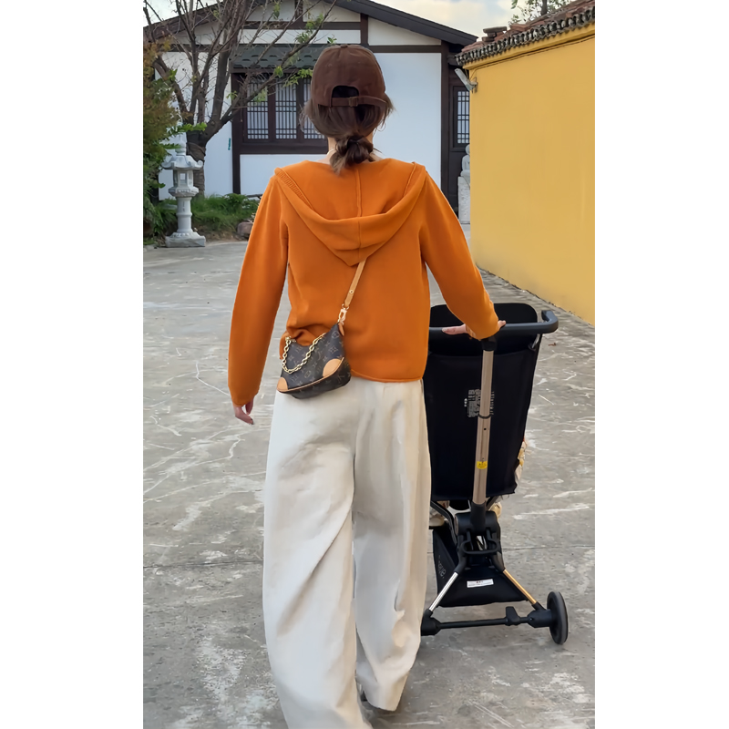 韩系早秋穿搭套装气质减龄连帽针织卫衣上衣休闲宽松阔腿裤两件套