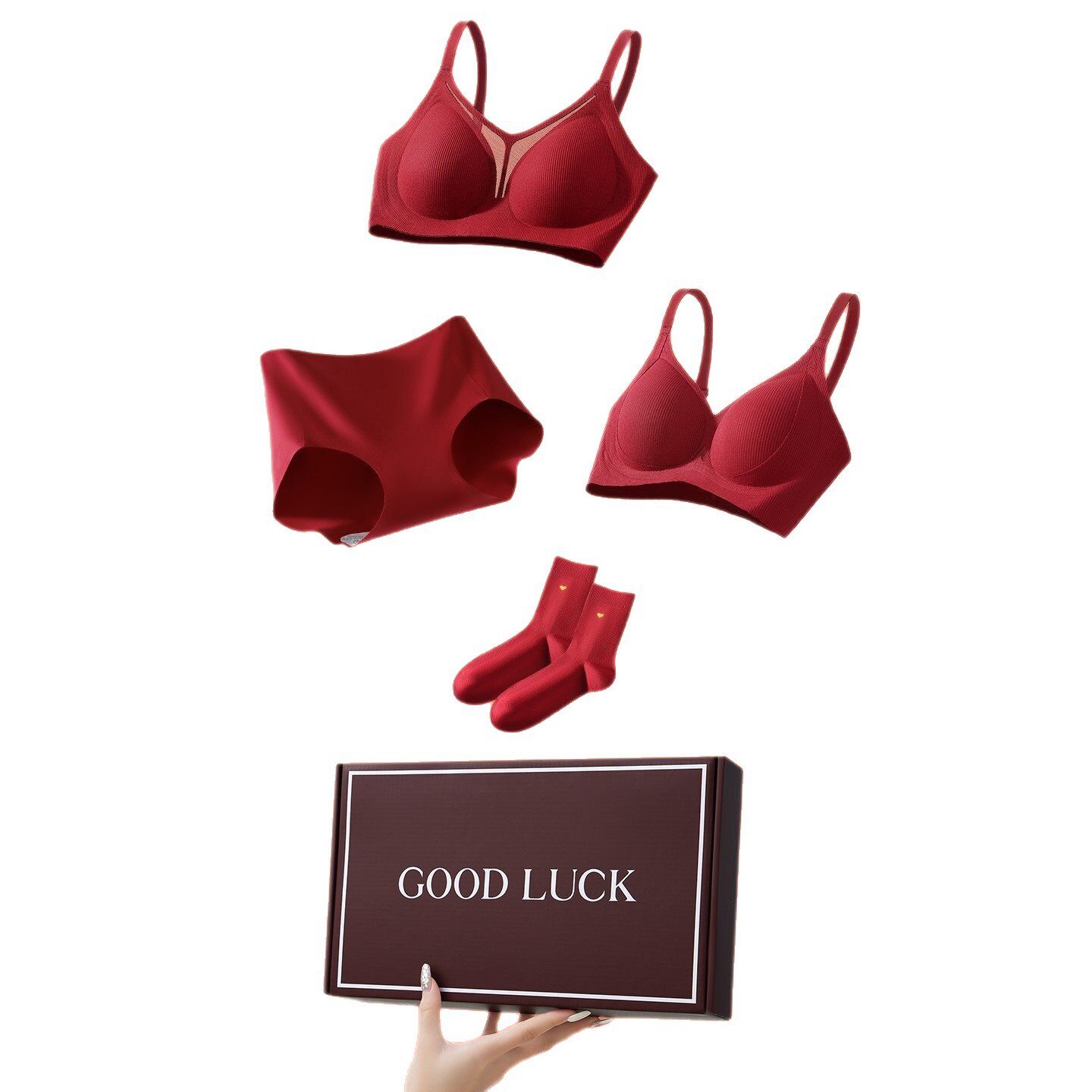 本命年红色内衣女小胸聚拢结婚新娘内裤袜子套装性感无痕文胸罩