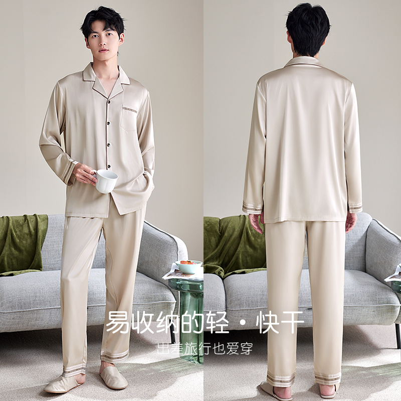 轩靓睡衣男士春秋款秋季冰丝长袖可外穿仿真丝绸大码家居服男套装
