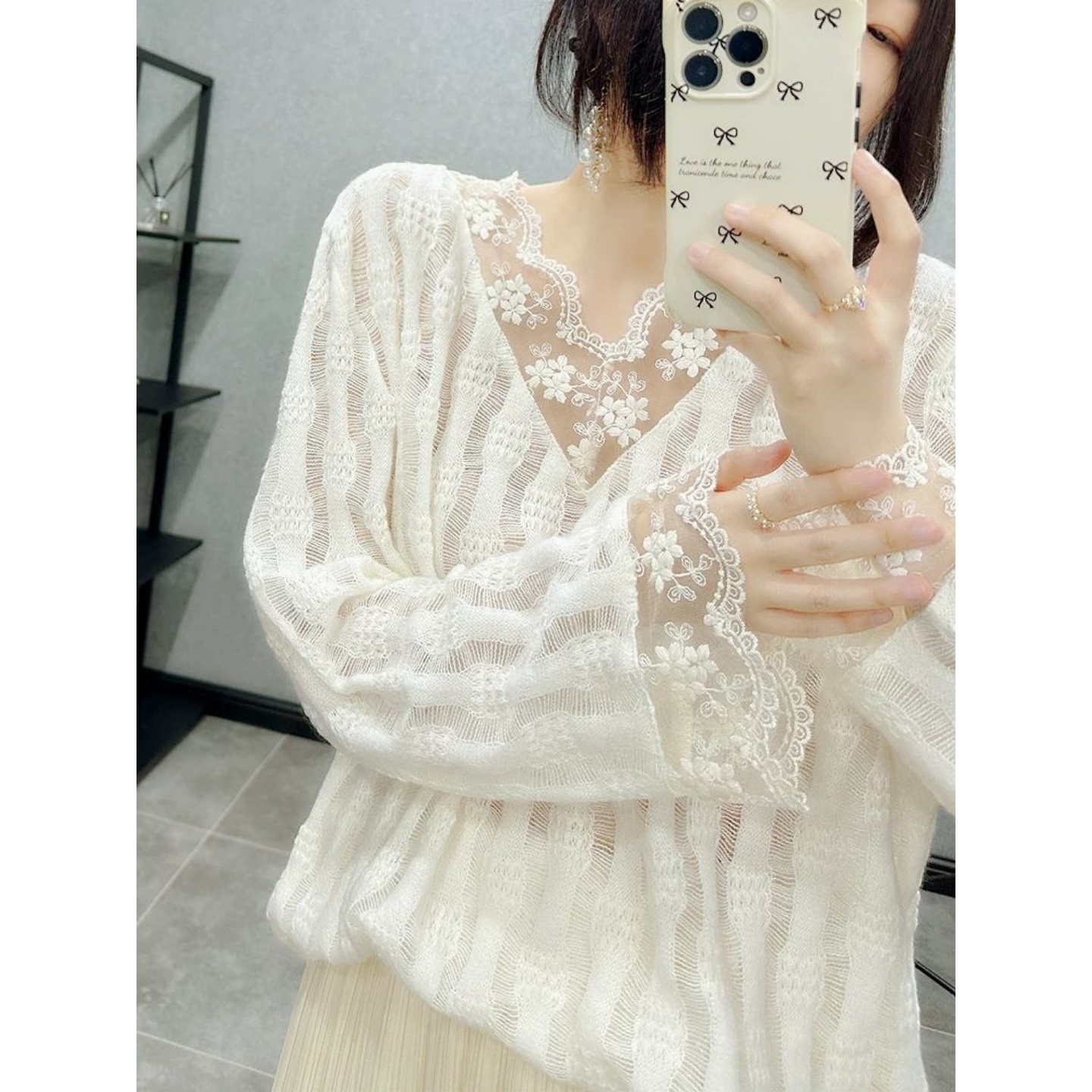 洋气宽松休闲显瘦蕾丝长袖上衣