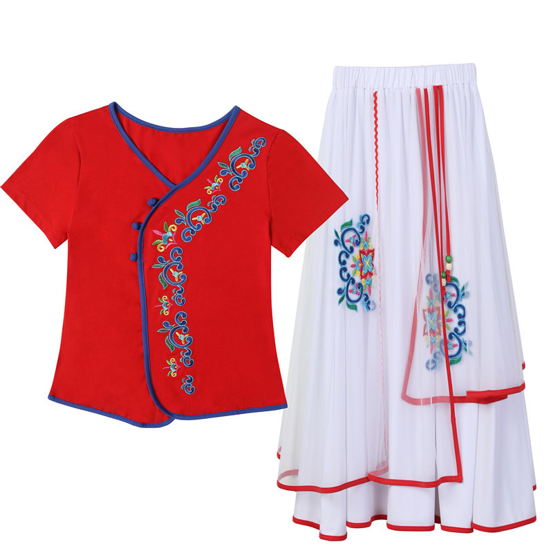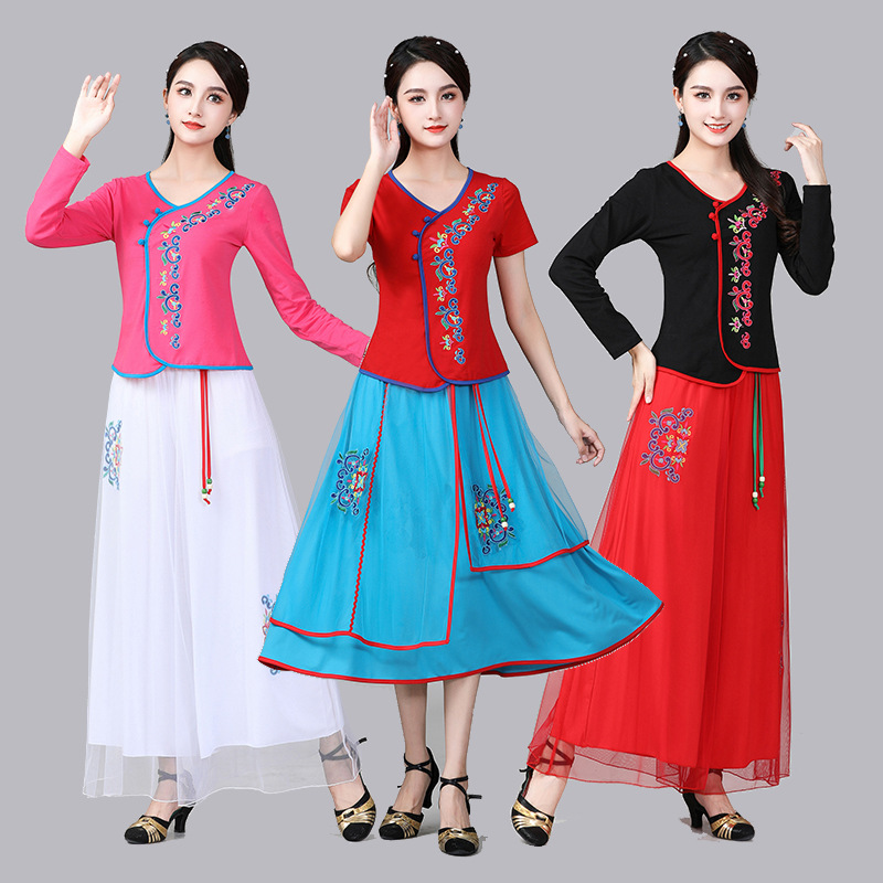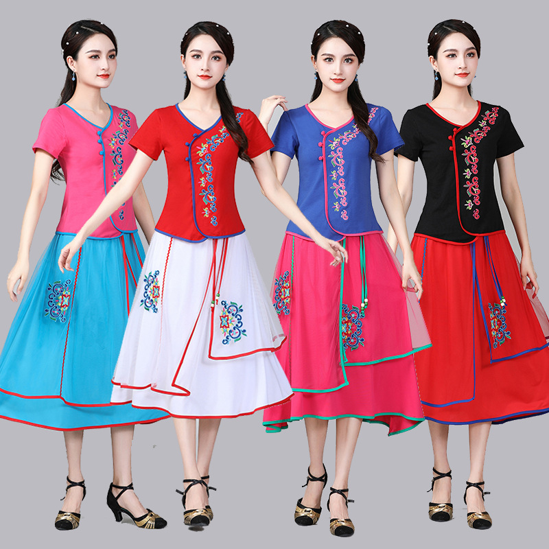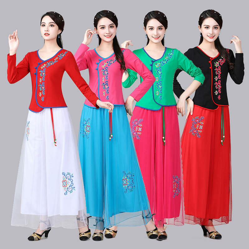日本品质2021新款广场舞秧歌服装套装成人女民族舞蹈腰鼓服演出服