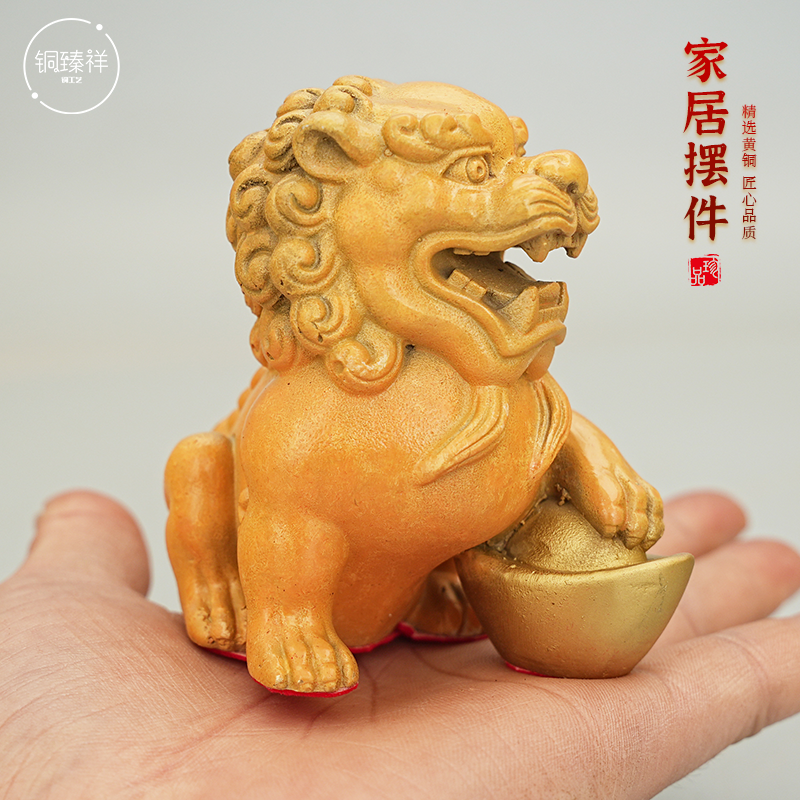 黄铜狮子一对雄狮铜狮子滚绣球铜器家居客厅办公室桌面装饰品摆件