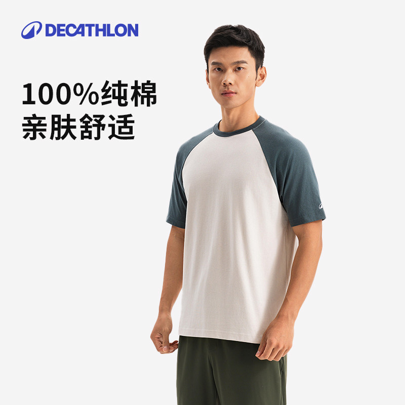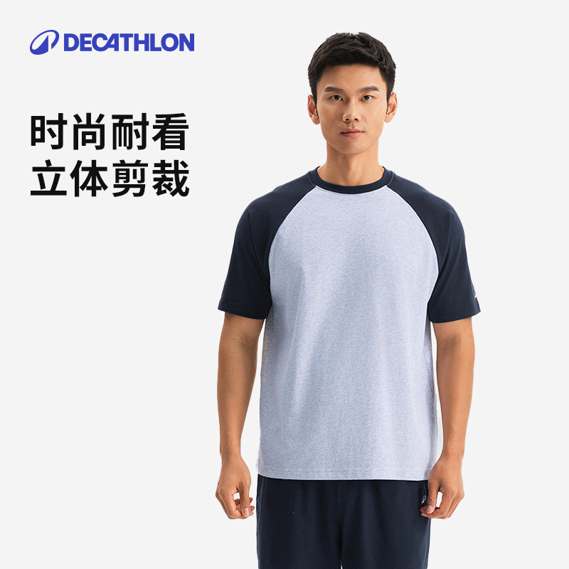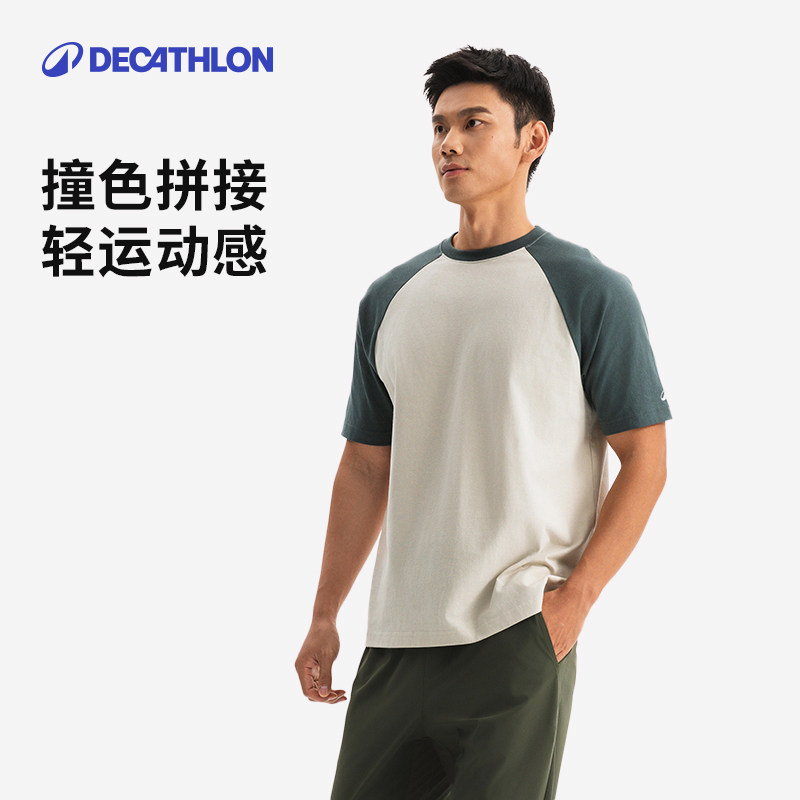 迪卡侬运动短袖T恤男女春夏健身拼色体恤跑步篮球纯棉上衣SAT3