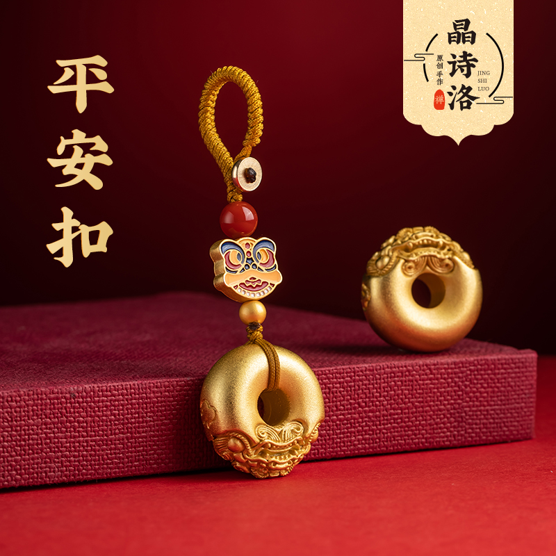 沙金黄铜貔貅平安扣钥匙扣女汽车挂件高档实心男新款挂饰锁匙链绳