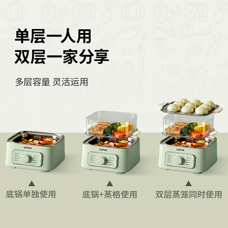 苏泊尔电蒸锅炖三层一体小多层早餐蒸笼蒸箱家用蒸煮多功能煮锅新