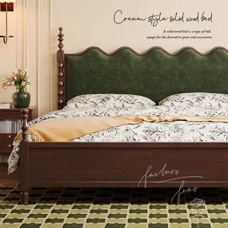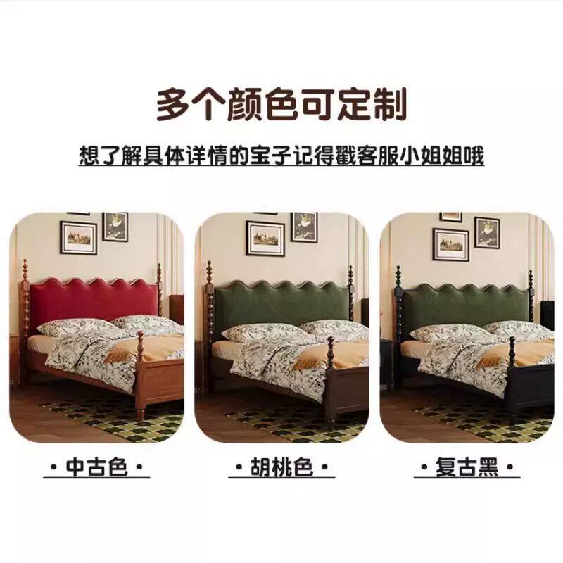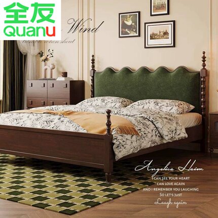 全友家居官网法式复古实木床主卧室1米8双人中古风美式胡桃木色20
