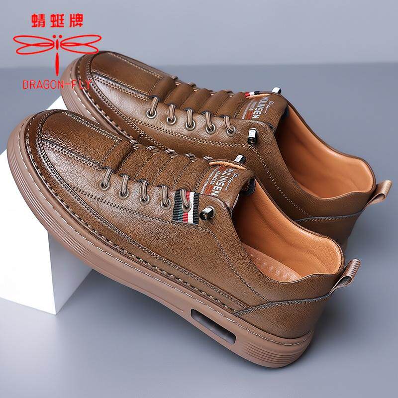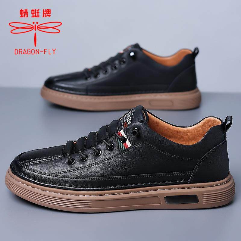 蜻蜓牌男鞋2025夏季商务休闲鞋子真皮软底百搭板鞋男士皮鞋运动鞋