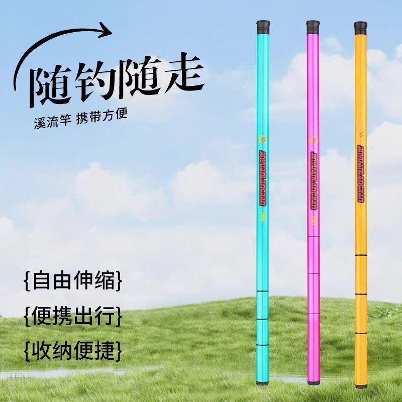 洁朵朵便携超轻短节玻璃钢溪流竿