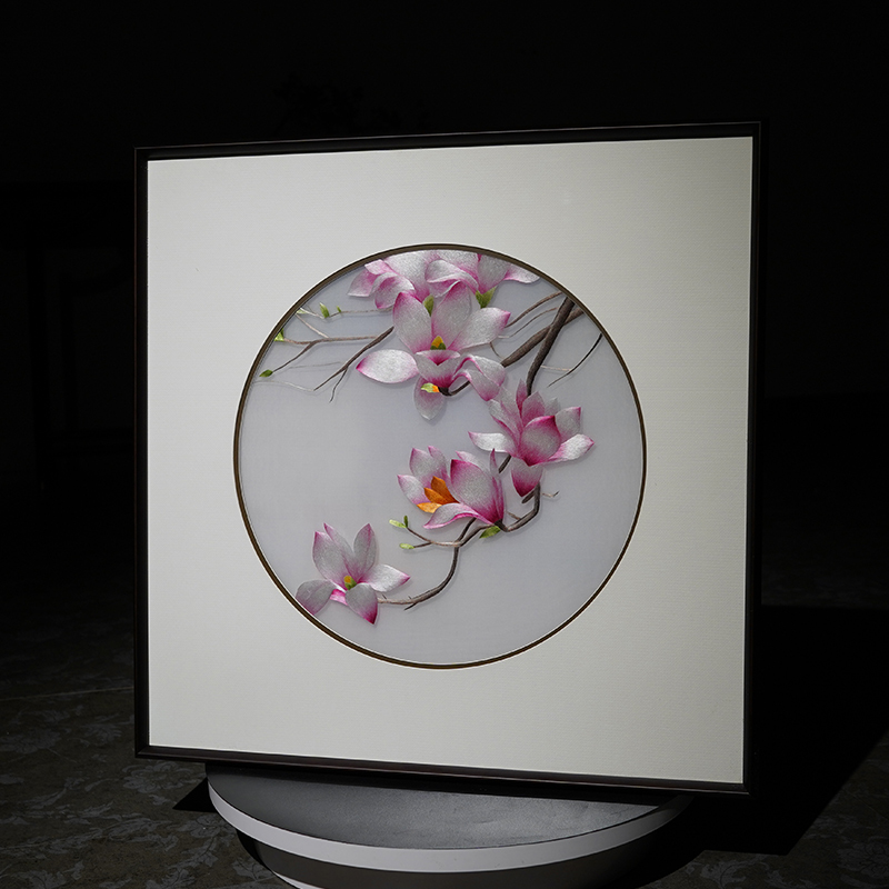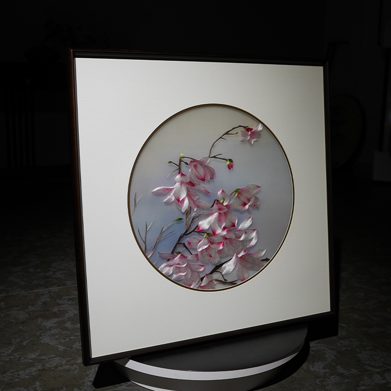 苏绣成品挂画玉兰花三联新中式客厅沙发背景苏州纯手工刺绣装饰画