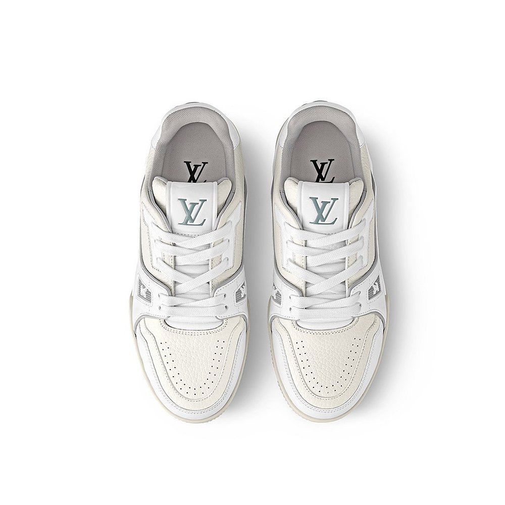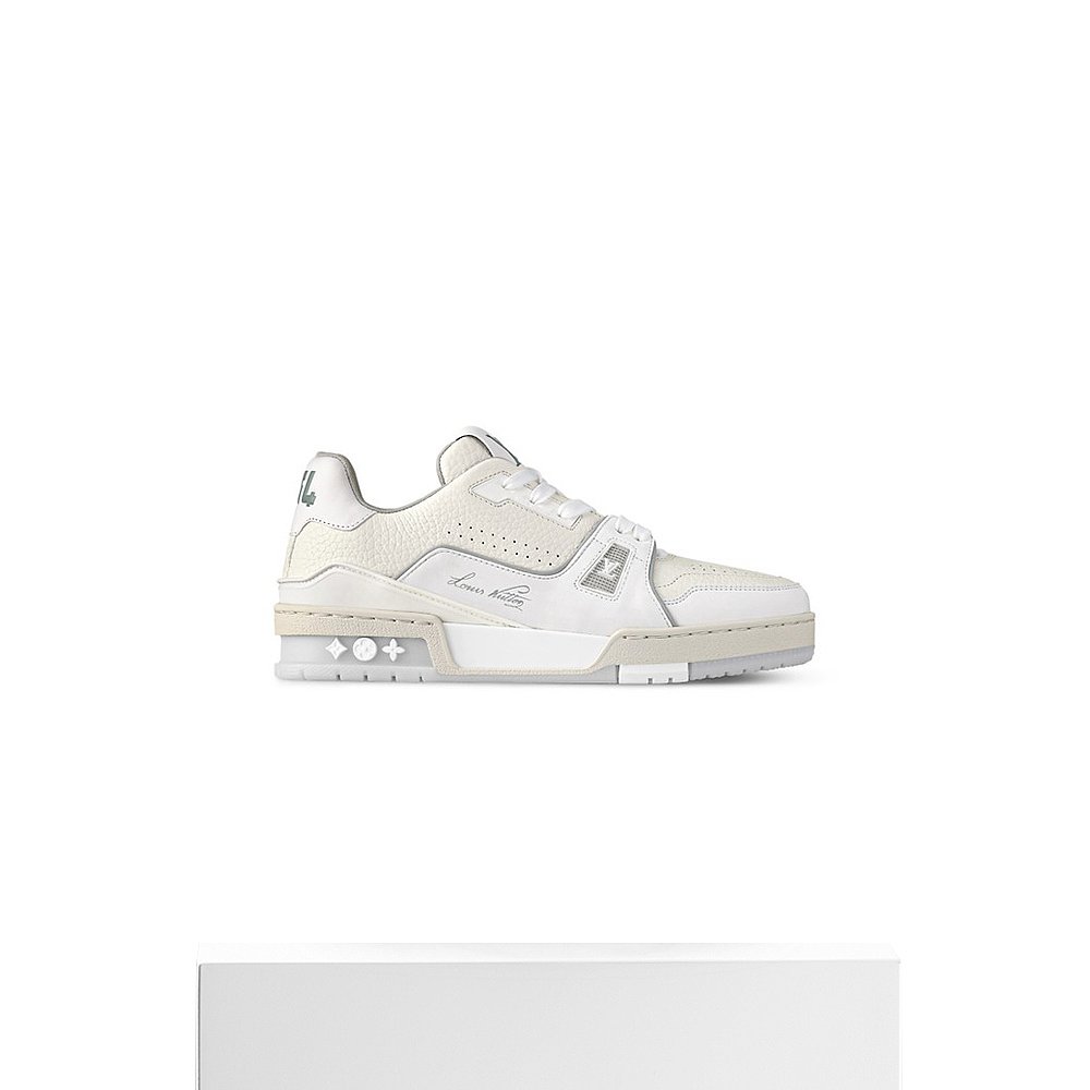 自营1h可退 欧洲直邮LV路易威登休闲鞋 男女通用白色米色牛皮压纹
