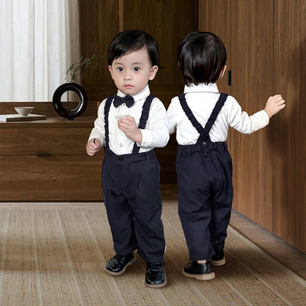 男童生日礼服宝宝周岁礼服领带衬衣英伦风小绅士服西装背带裤套装