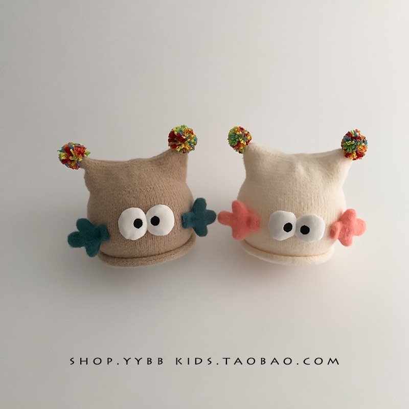 ins卡通儿童帽子秋冬季保暖针织套头帽男女宝宝防风毛线护耳帽潮