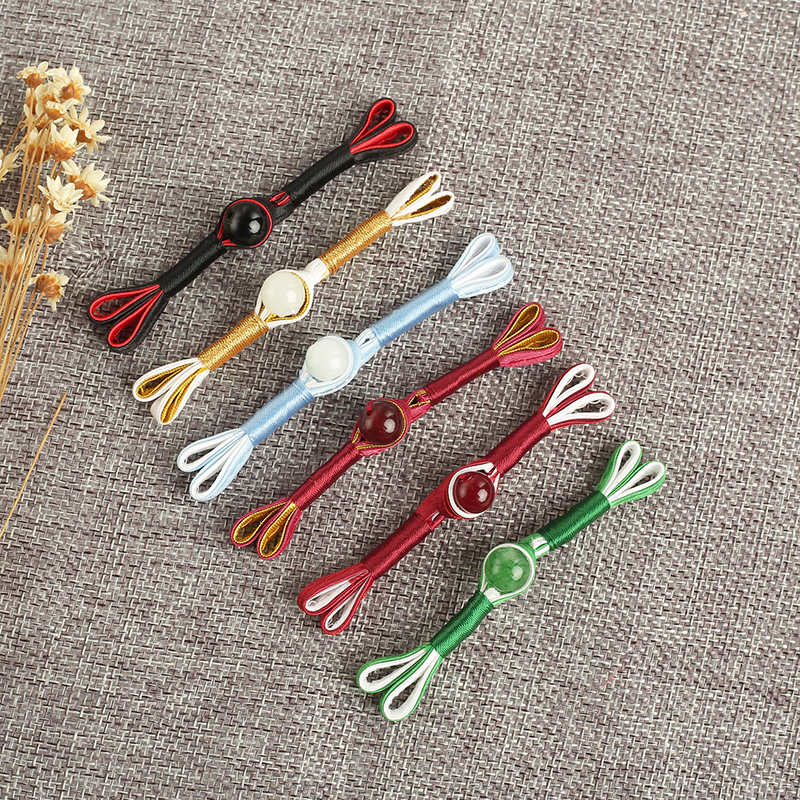 盘扣扣子 中国风旗袍唐装古装上衣扣 手工玉石绕线燕尾一字扣