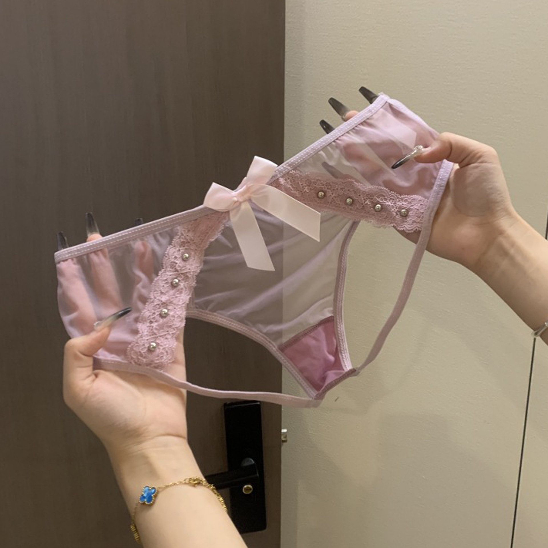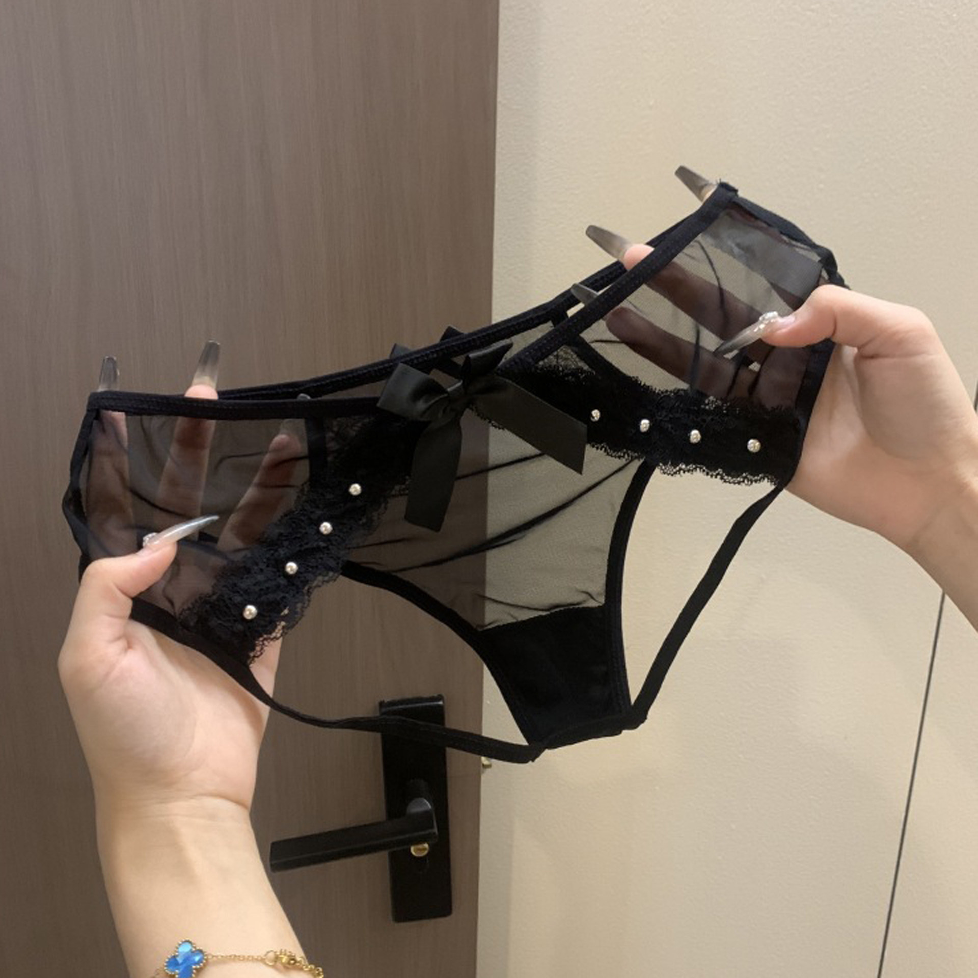 蕾丝开裆内裤女士镂空蜜桃臀新款铆钉性感诱惑免脱低腰纯欲三角裤