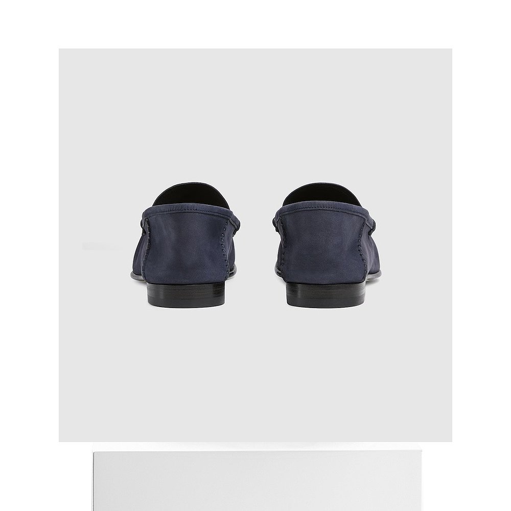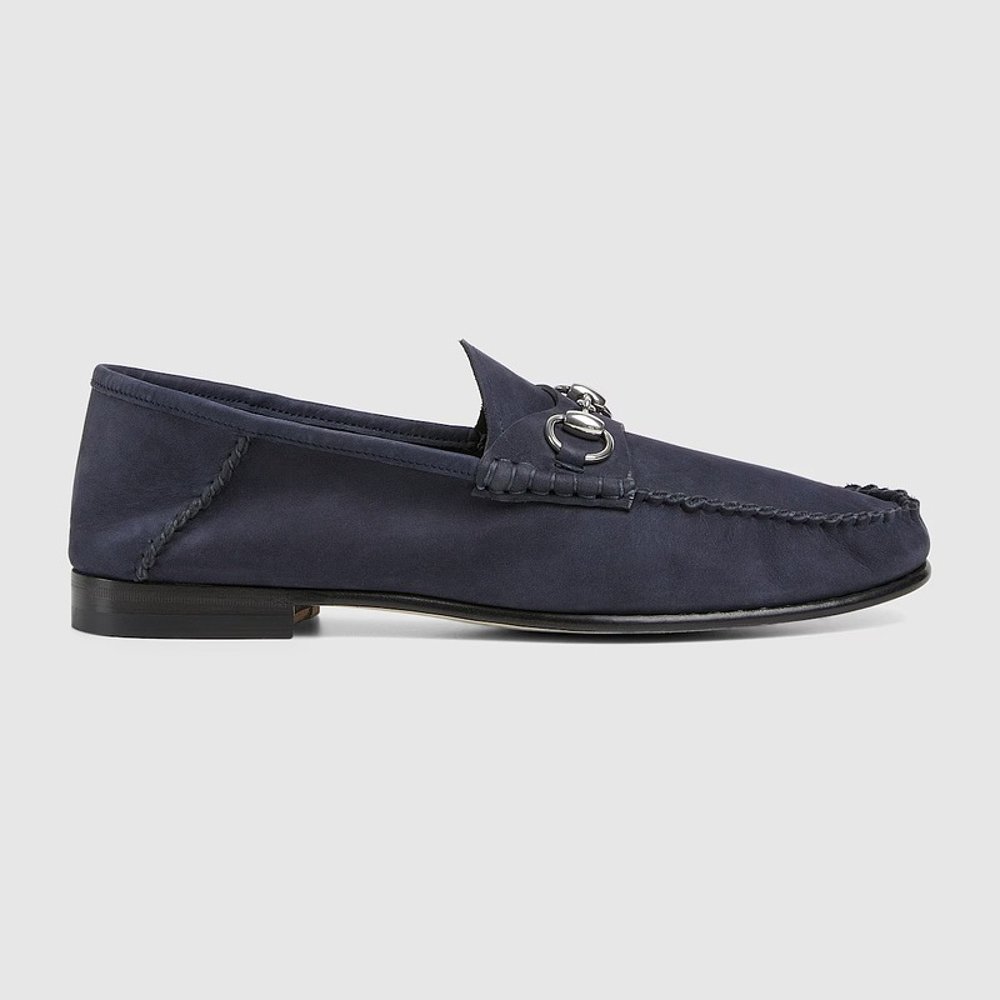 自营欧洲直邮Gucci/古驰 Gigi系列男士深蓝色麂皮马衔扣乐福鞋