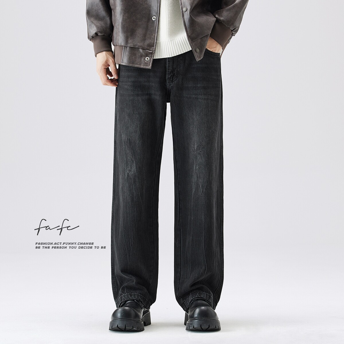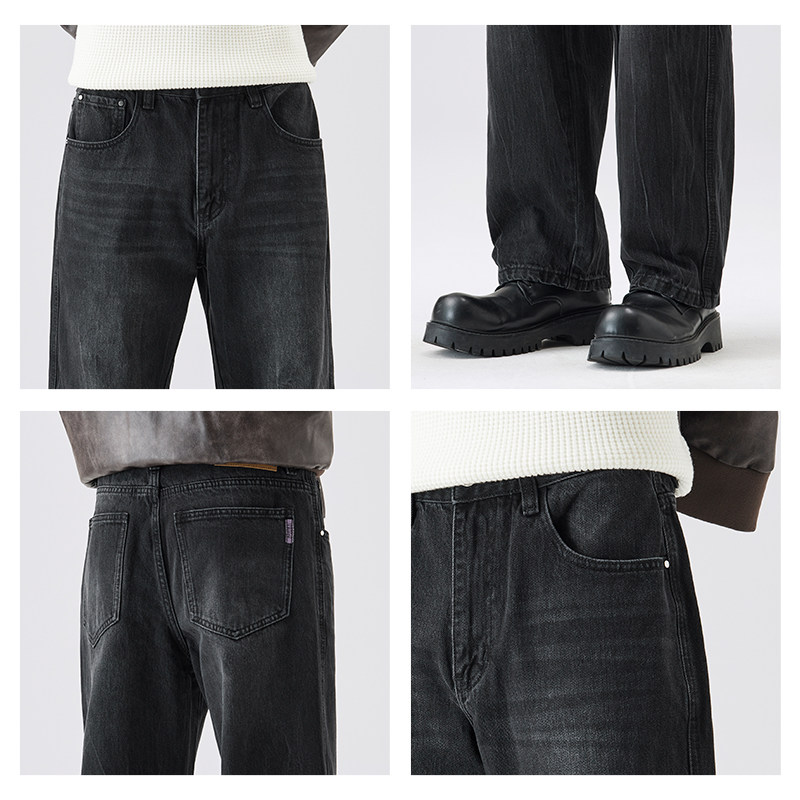 FAFC秋冬季新款高级感黑色水洗美式高街宽松直筒阔腿休闲牛仔裤男