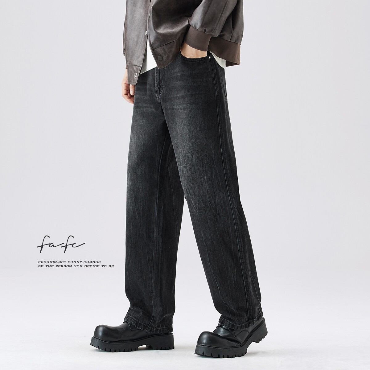FAFC柔软舒适高街阔腿牛仔裤