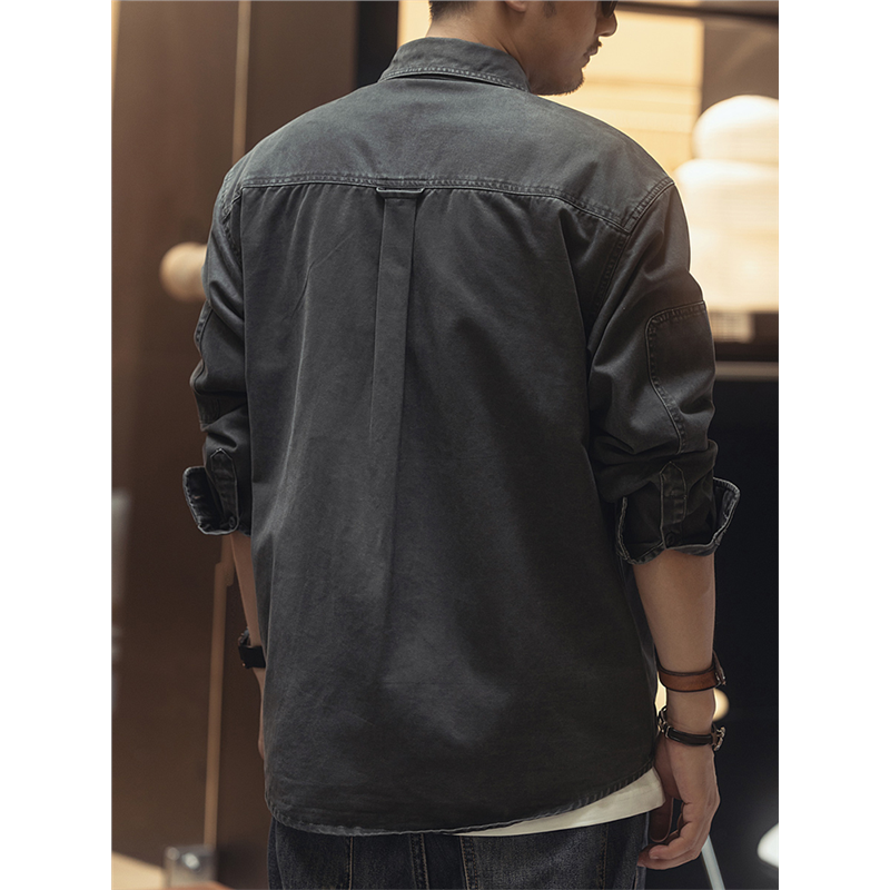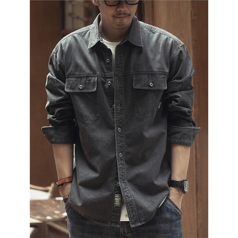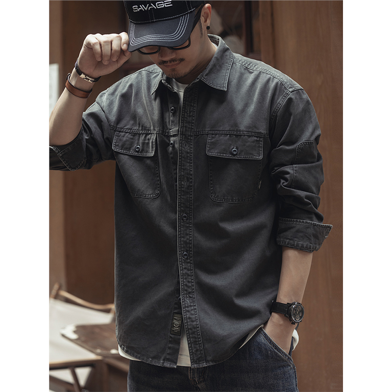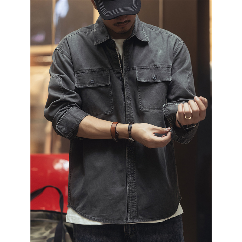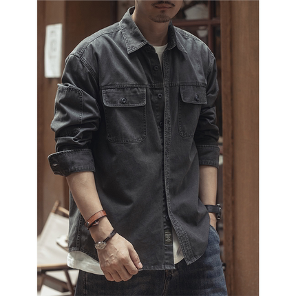 美式复古工装夹克男士纯棉宽松秋季高级感户外休闲牛仔衬衫外套男