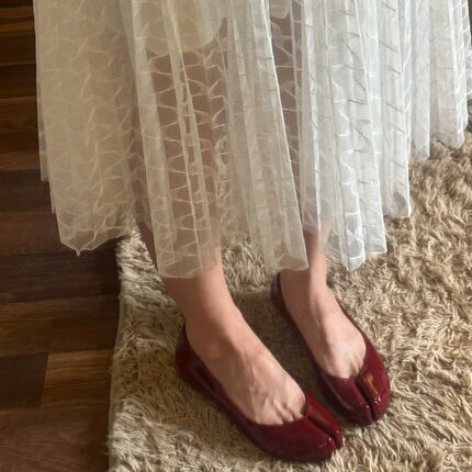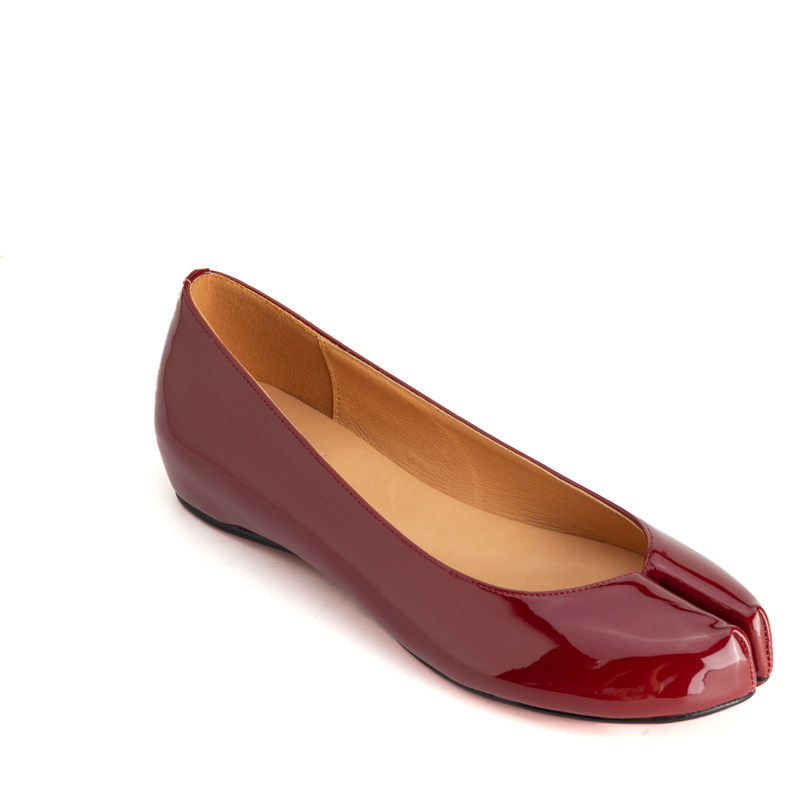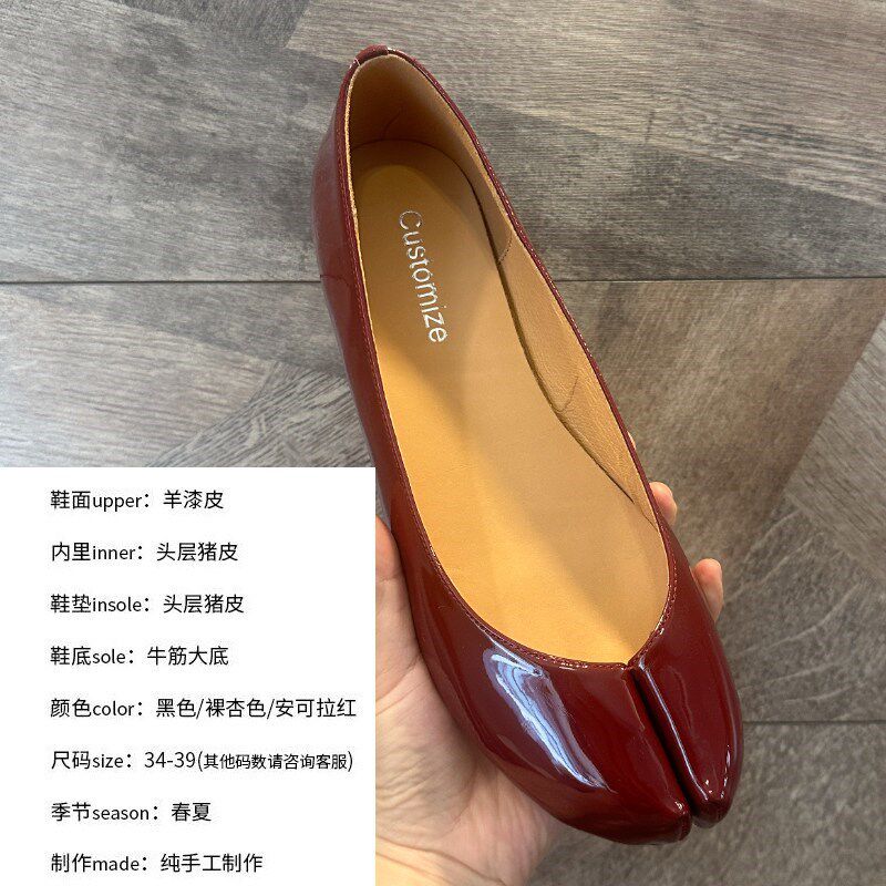 欧洲站超软小羊皮红底红色分趾平底单鞋女夏2025新款猪蹄鞋配裙子