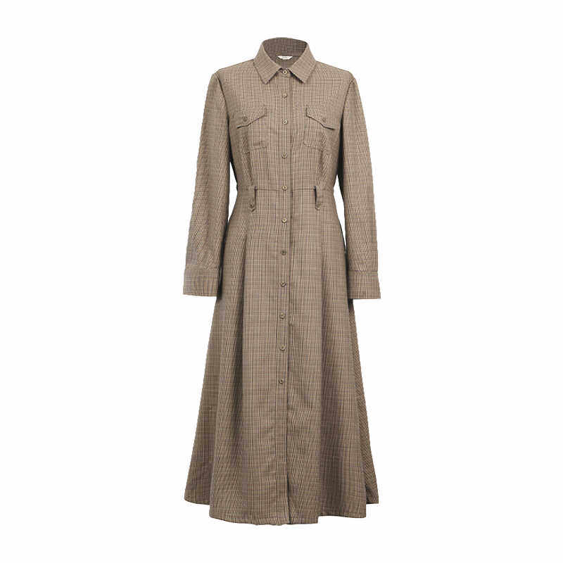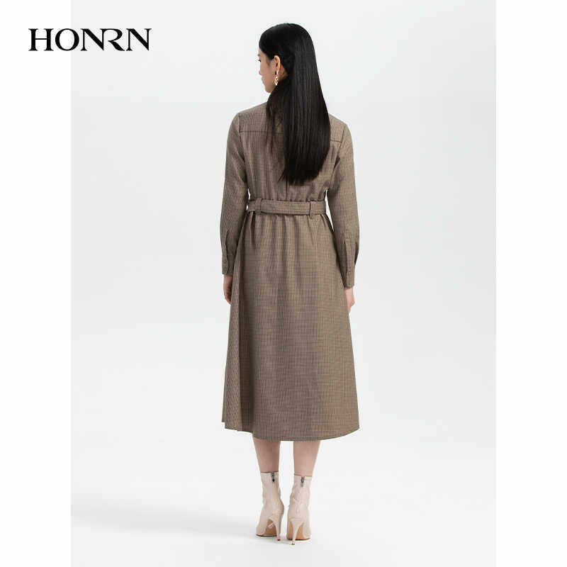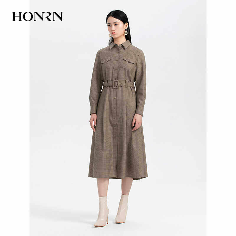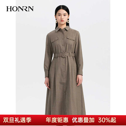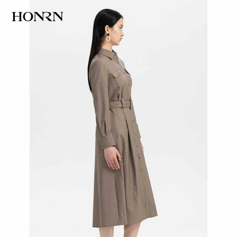HONRN/红人千鸟格纹长裙子修身收腰显瘦a字连衣裙女春秋HH33OL274