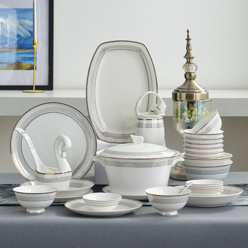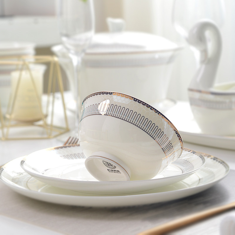 饭碗家用轻奢碗碟套装2025新款高端唐山骨瓷乔迁餐具陶瓷美式盘子
