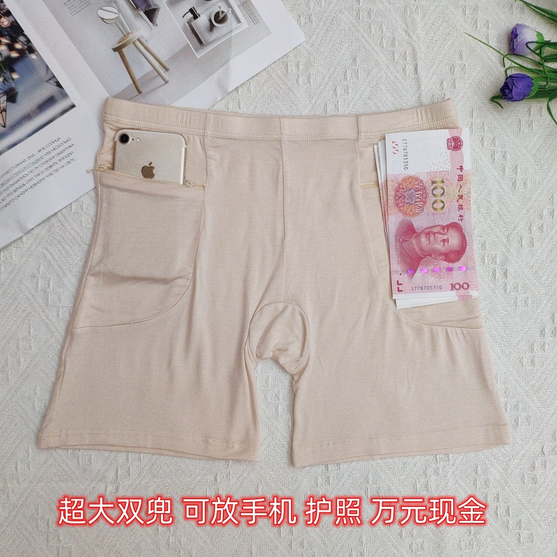 安全裤女防走光夏季大码防盗内裤妈妈纯棉带兜大口袋拉链四角短裤