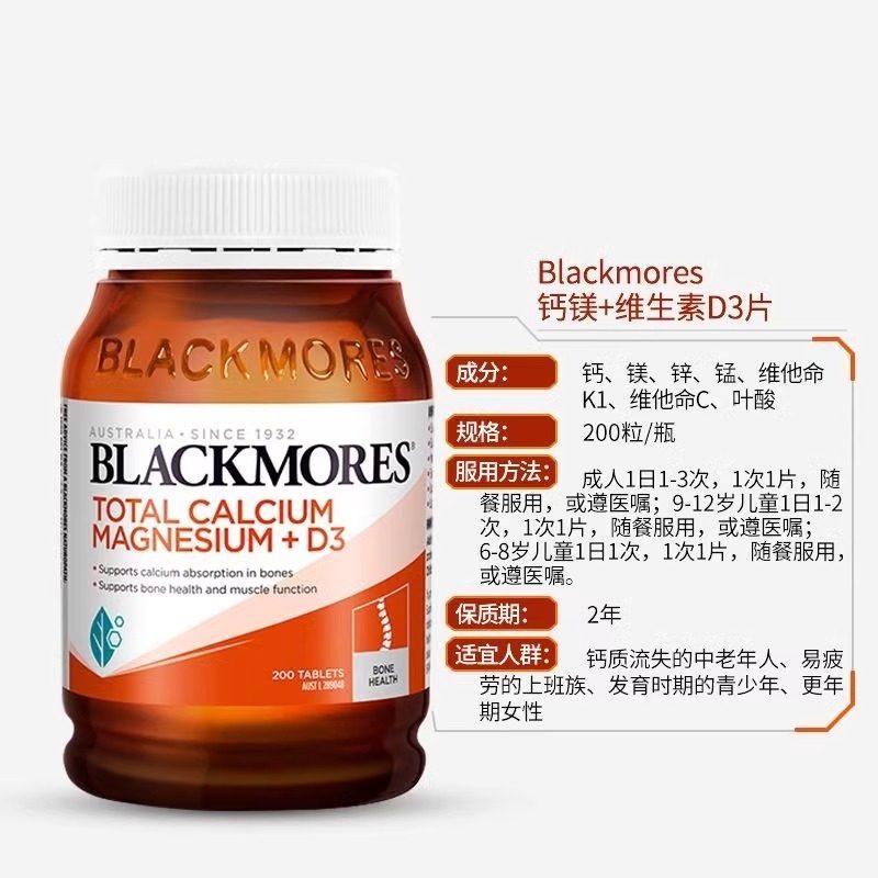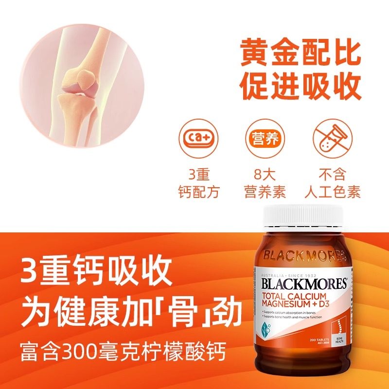 Blackmores澳佳宝活性钙镁片+维生素D3补钙200粒成人呵护骨骼
