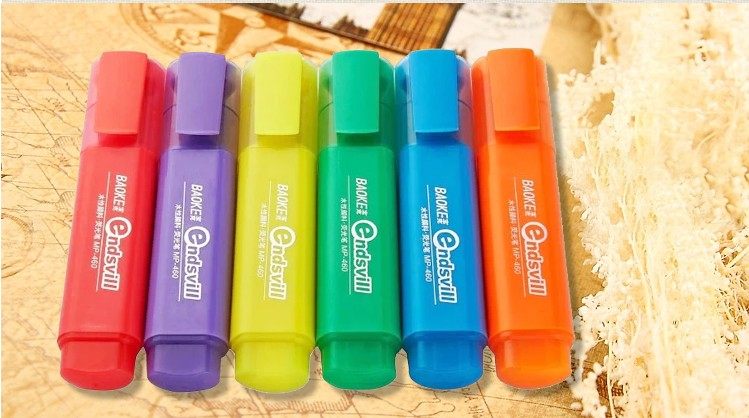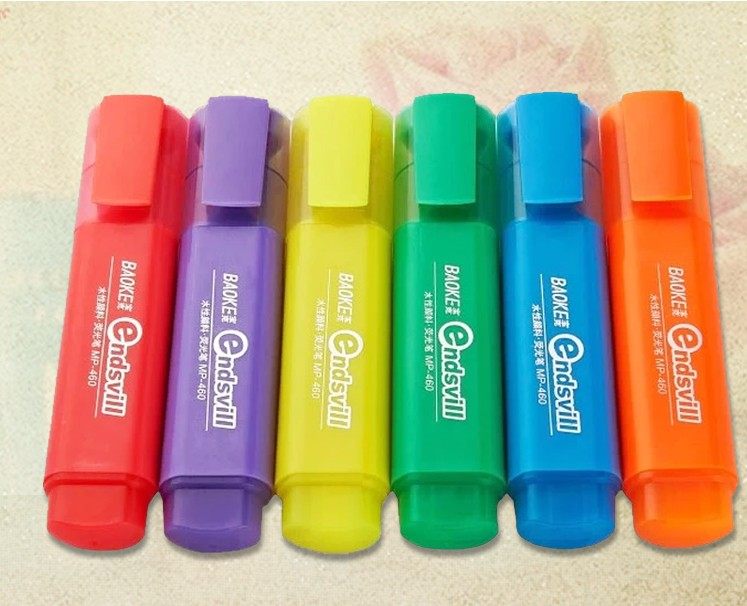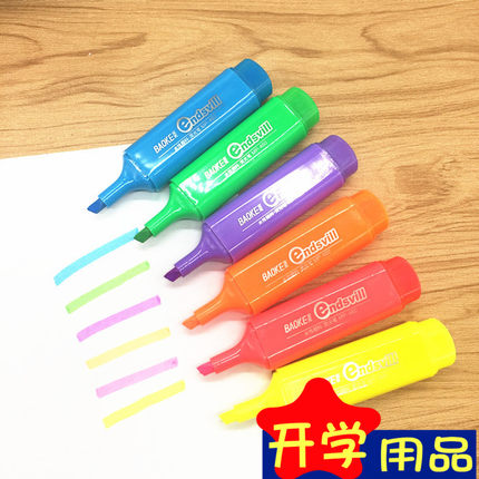 宝克460黄色橙色粉色荧光笔彩色笔记号笔学生用品办公彩色记号笔