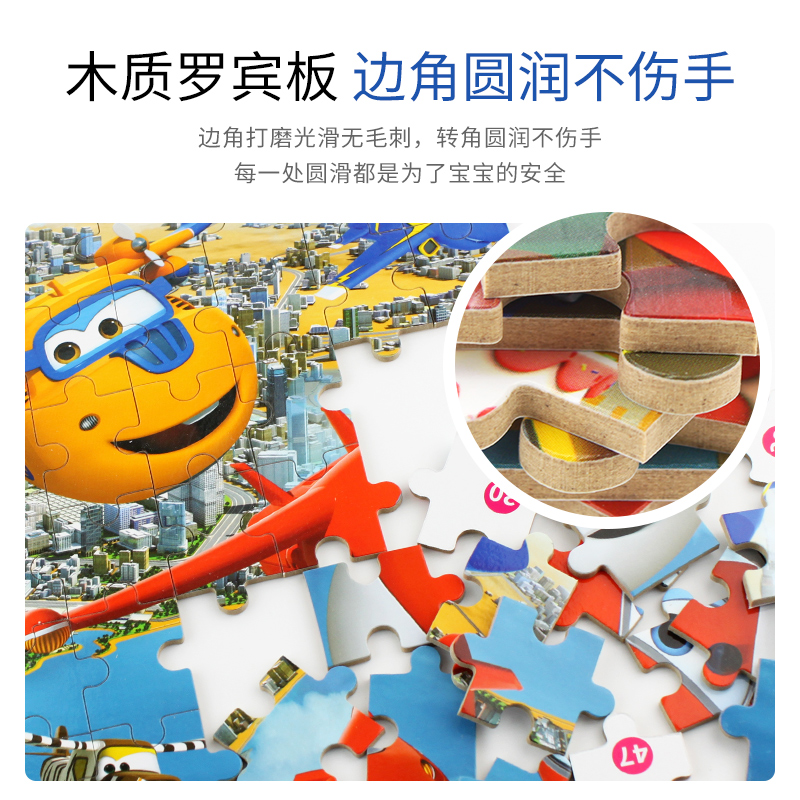 儿童益智进阶拼图木质框式60/100片3-6岁5超级飞侠平图玩具带底框