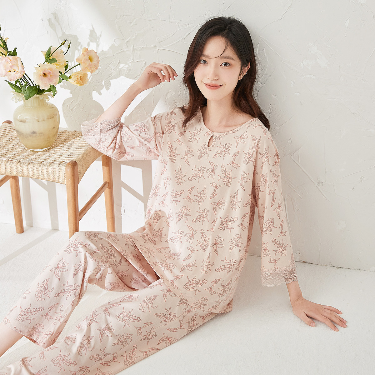 顶瓜瓜女士圆领套头阳光棉睡衣顶呱呱春夏季新品家居服套装可外穿