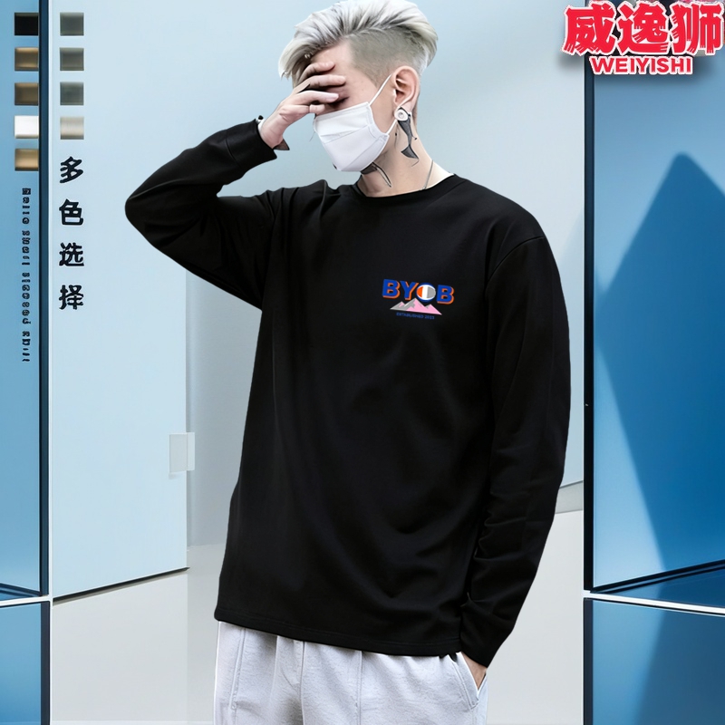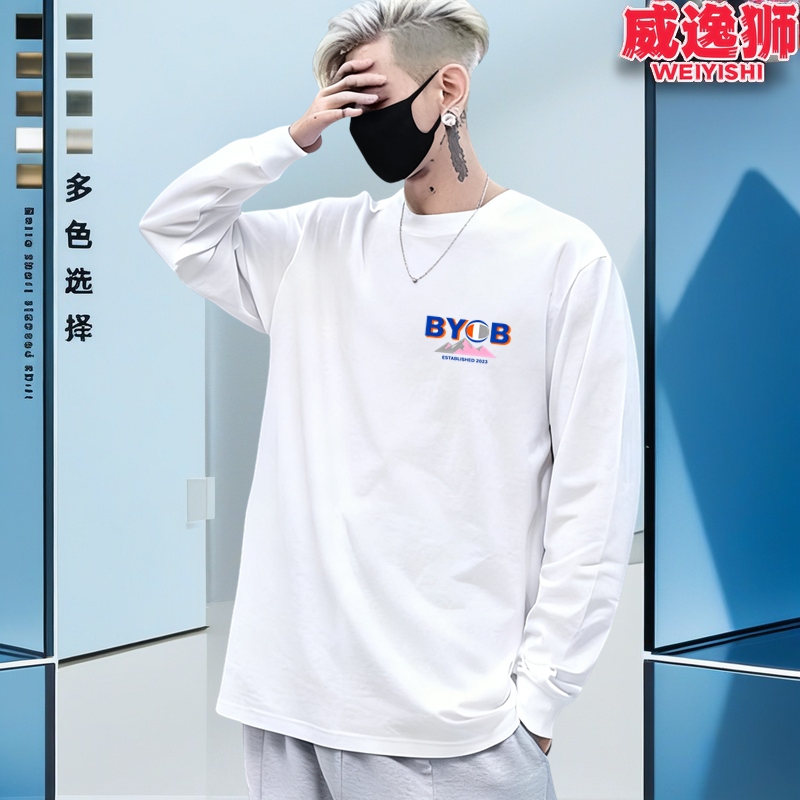 威逸狮港味 长袖t恤男运动打底衫内搭宽松版白色美式穿搭复古上衣