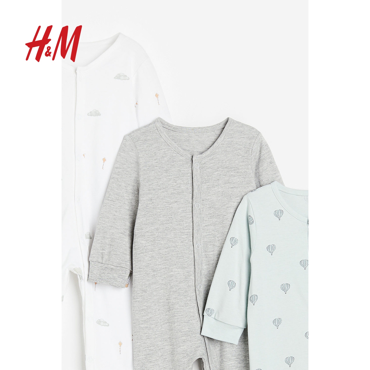 HM童装男婴女婴居家服3件装秋季套装棉质连体睡衣1170979