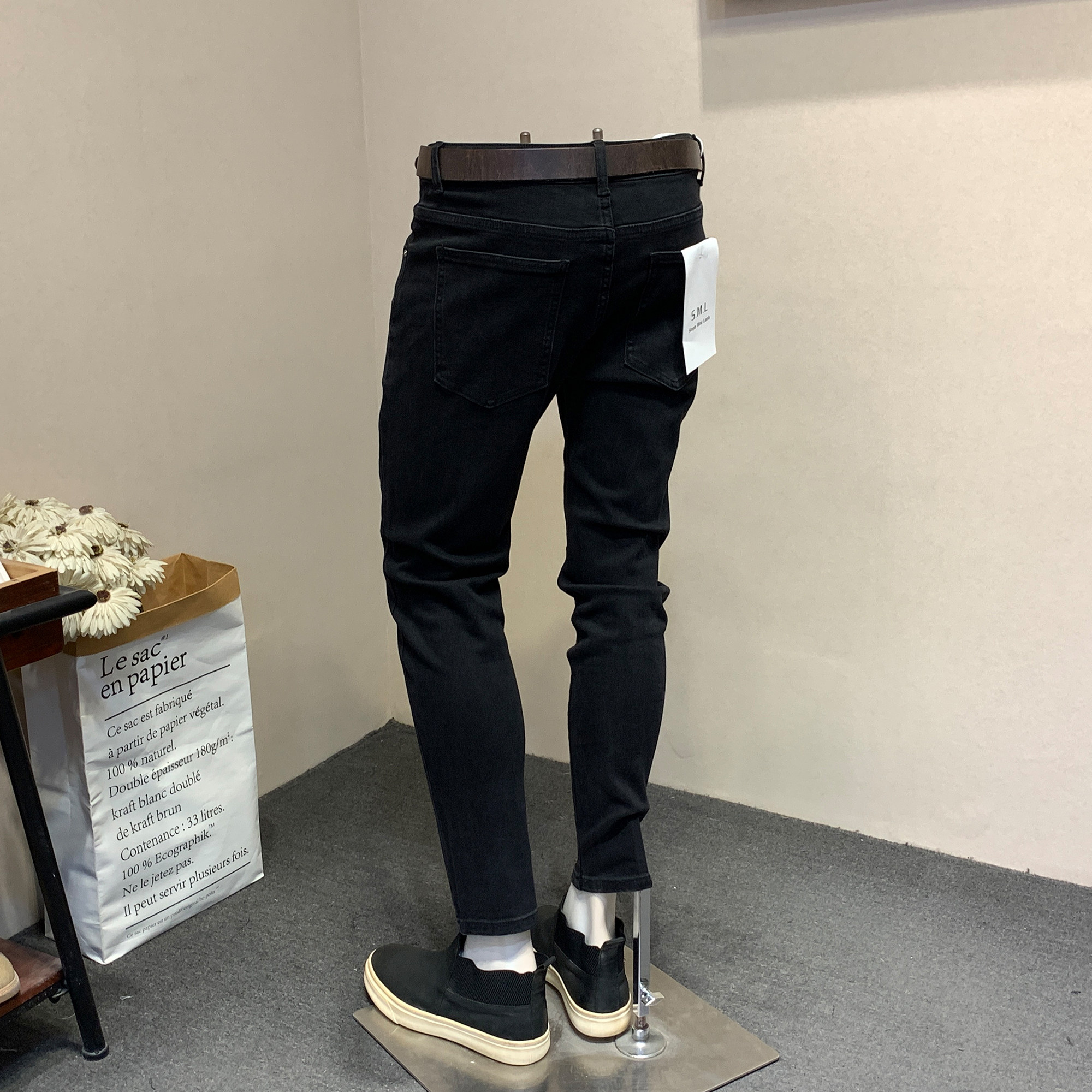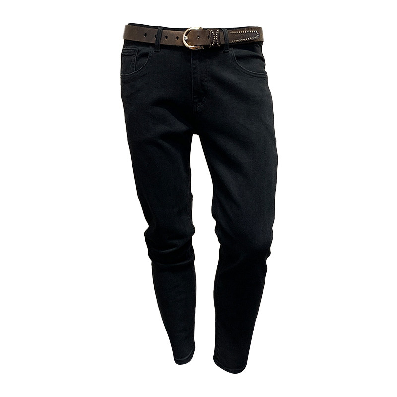 2025秋季秋冬季男士小脚牛仔裤韩版修身水洗黑色弹力男长裤新款男