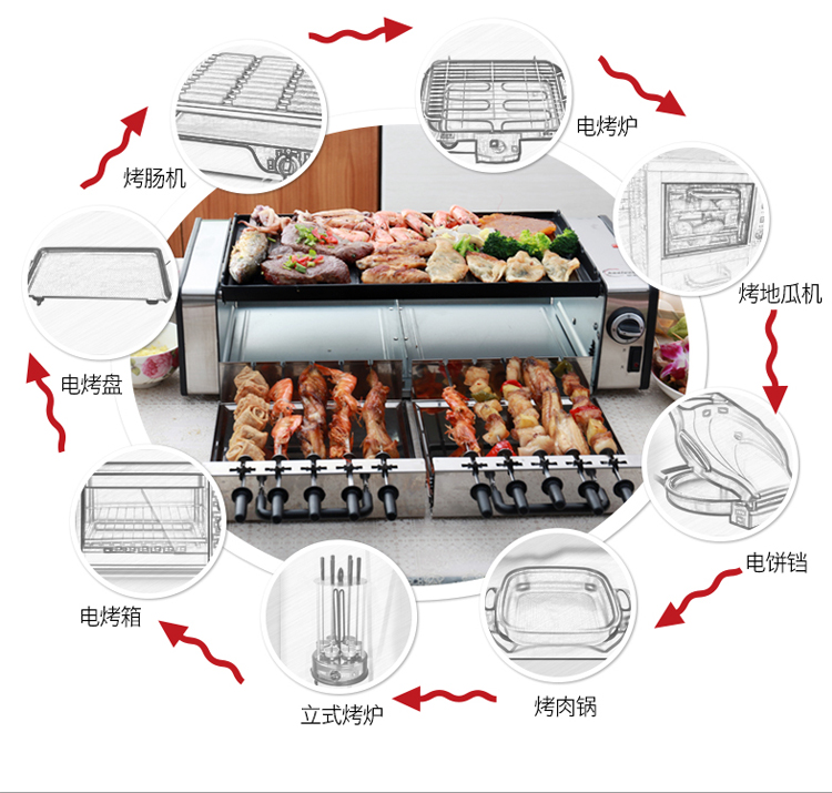电烧烤炉子家用无烟烤肉炉全自动旋转烤串机户外烧烤机商用烧烤架