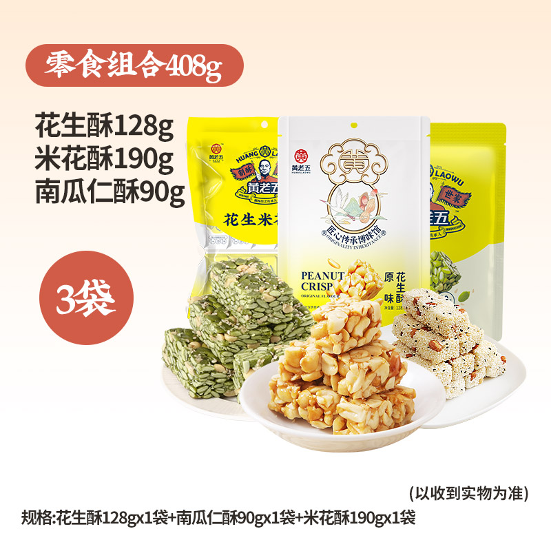 黄老五花生酥果仁米花酥组合408g四川特性小零食年货特产