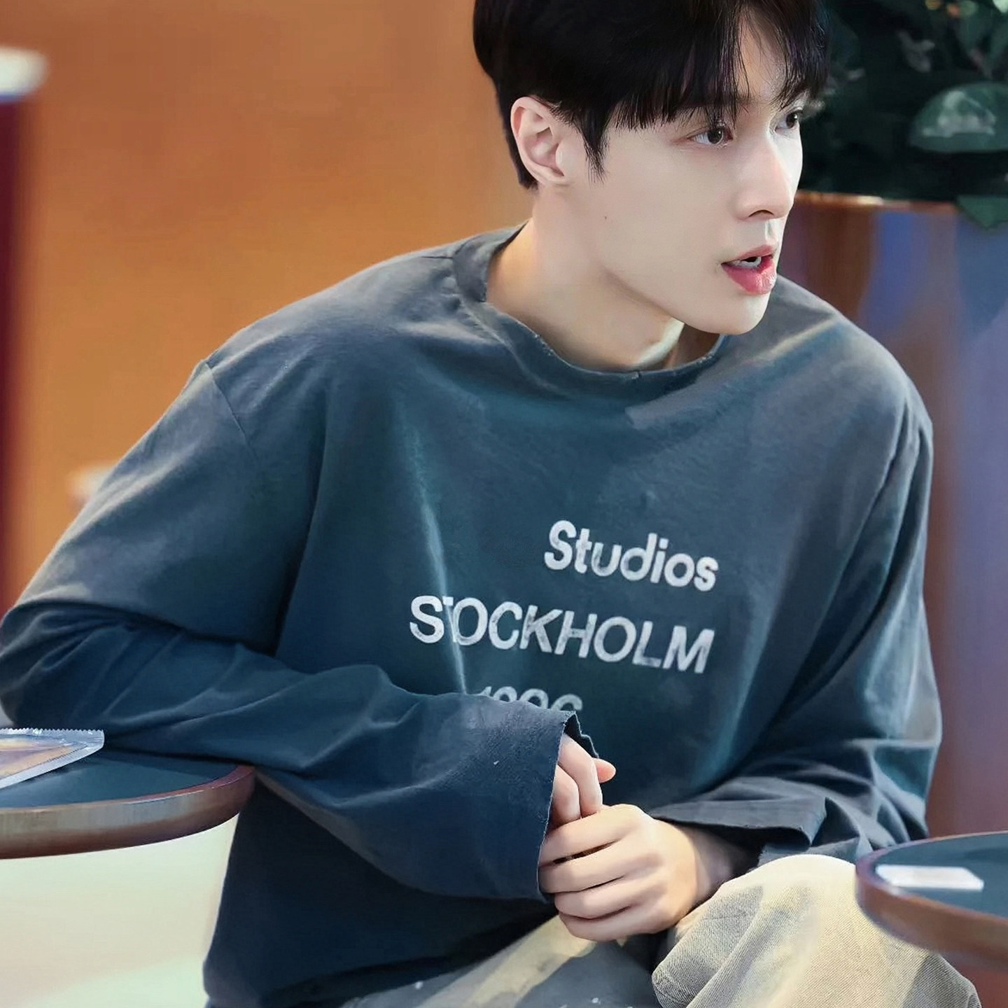 AC风格简约字母印花打底衫复古磨破做旧男女同款宽松休闲长袖T恤