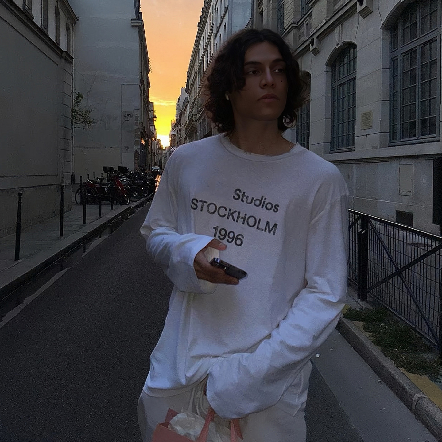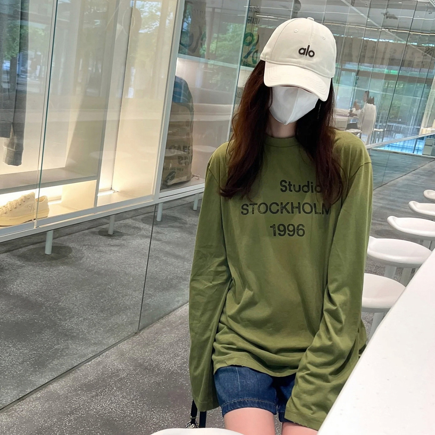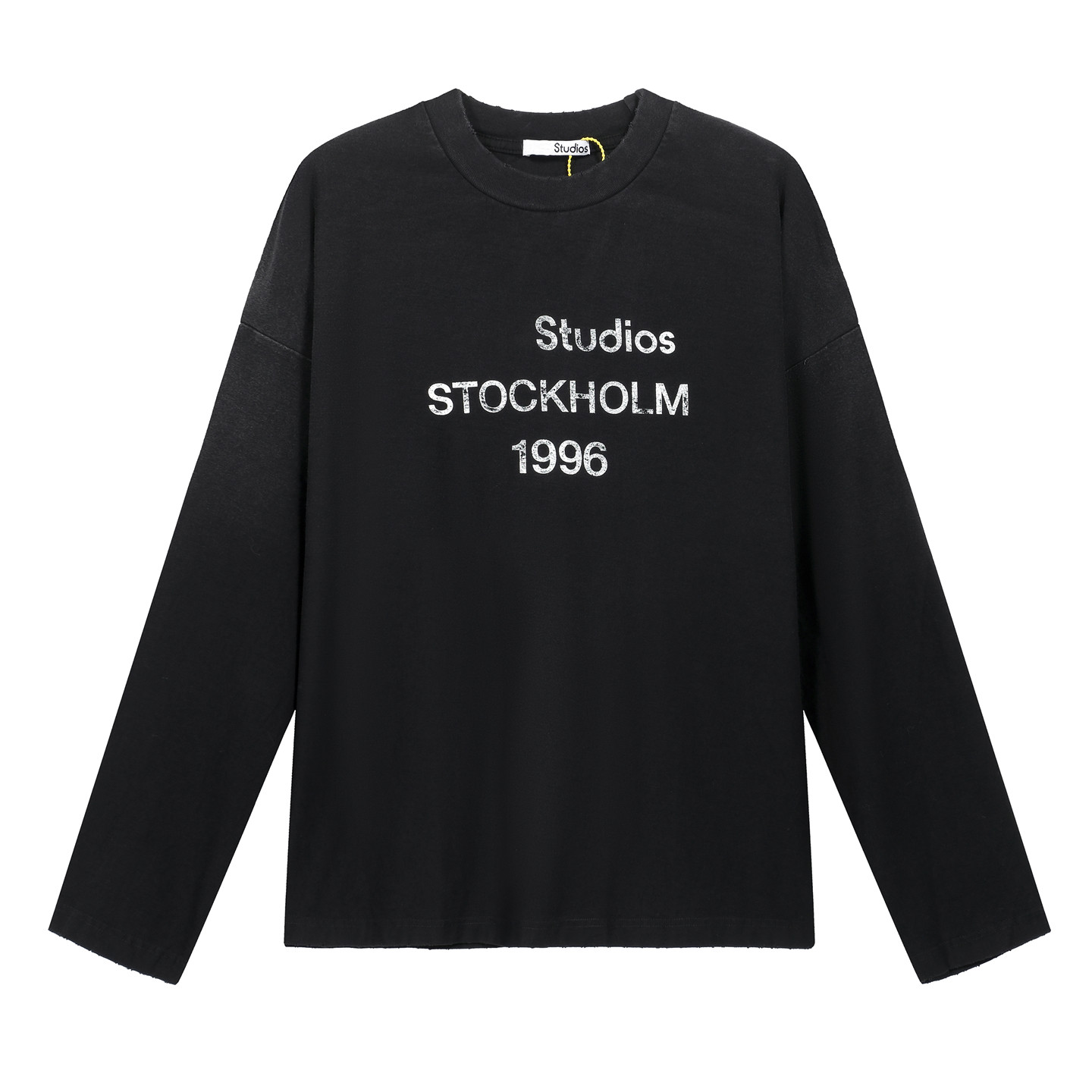 AC风格字母印花磨破做旧长袖T恤