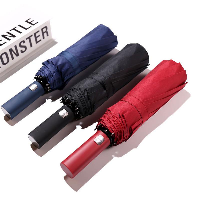 全自动骨黑胶三折叠男商务晴雨伞加长彩色手柄可定制广告礼品伞
