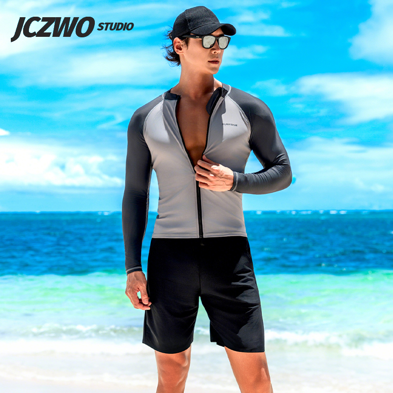 男士泳衣泳裤套装长袖游泳上衣防晒衣速干温泉男款冲浪服潜水母服