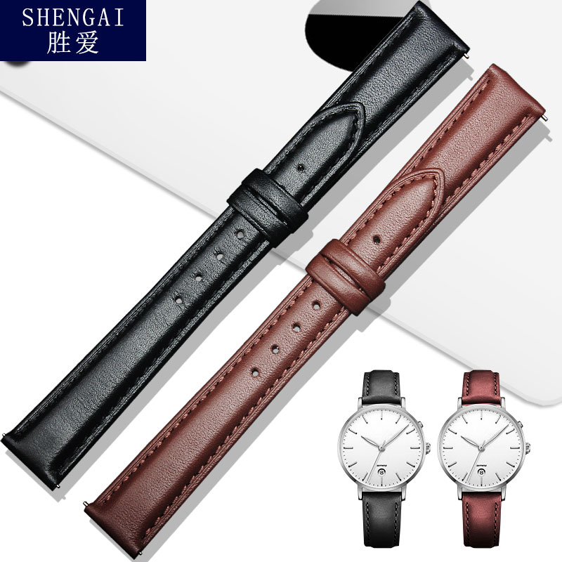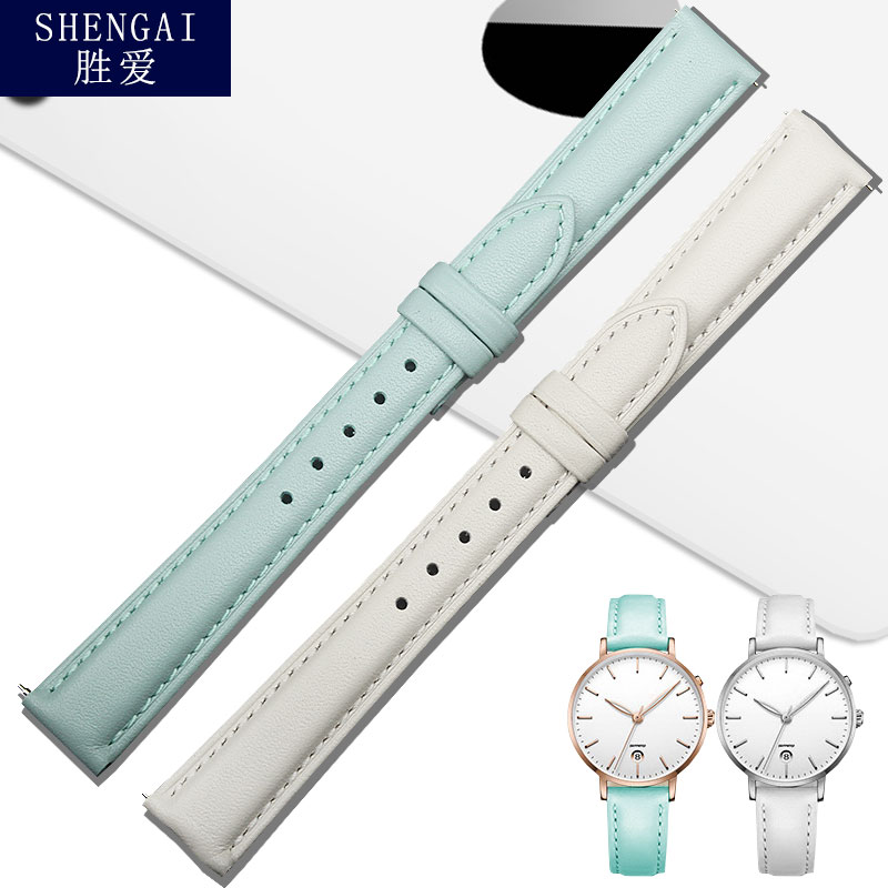 适配芙丽天梭飞亚达精工手表带防水牛皮阿玛尼真皮女表带14mm配件