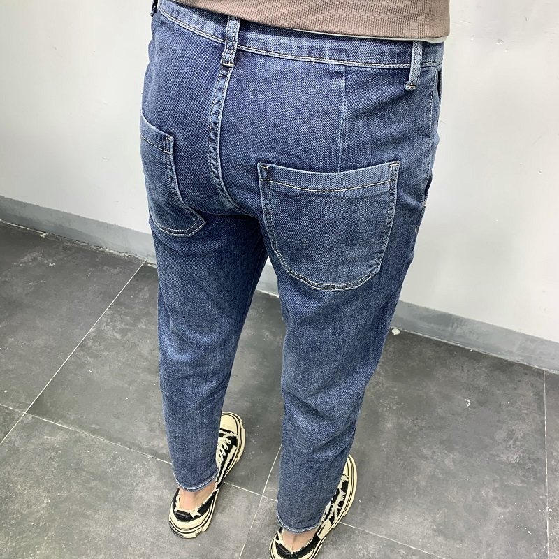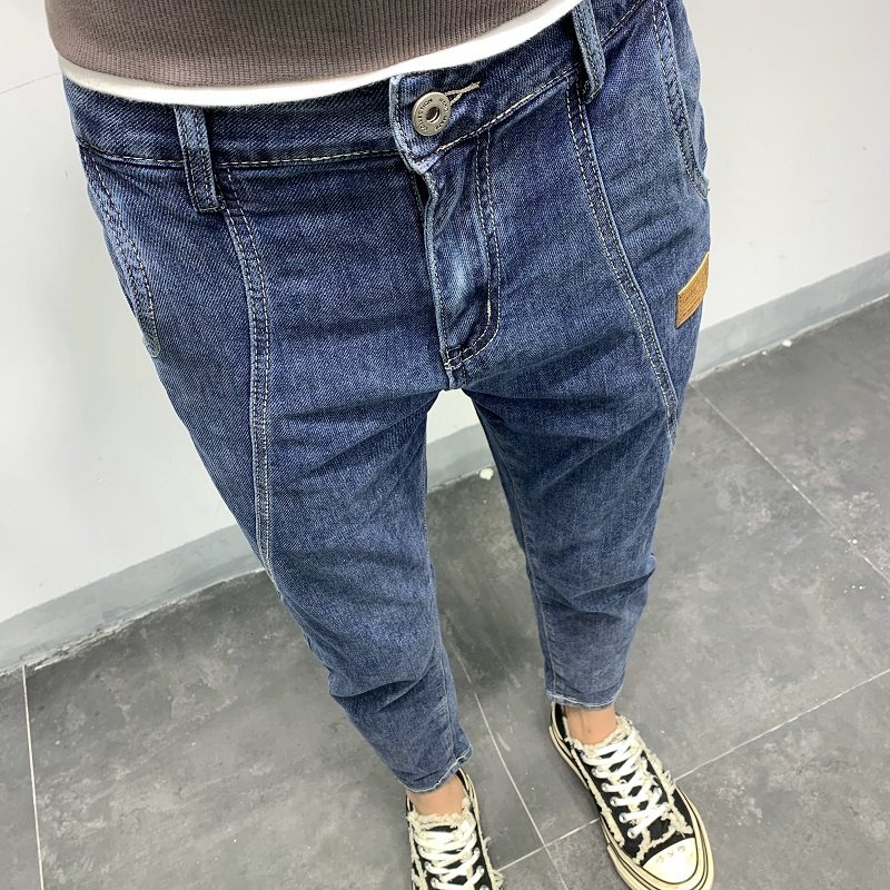 牛仔裤男士潮牌2025年夏季新款修身小脚百搭潮流斜插口袋九分裤子