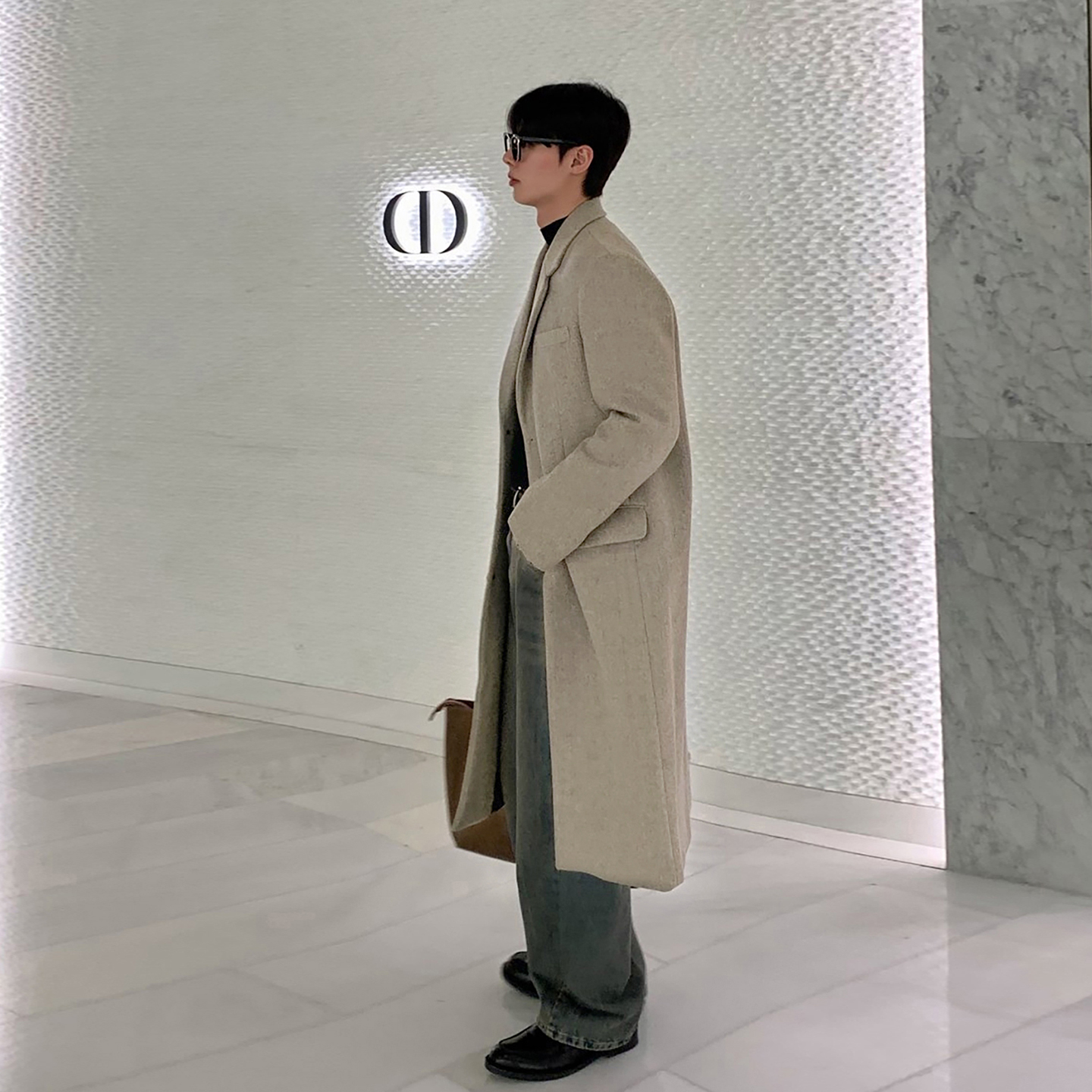 碧舍小众高级中长款秋冬男款毛呢大衣韩版宽松轻奢呢子风衣外套潮