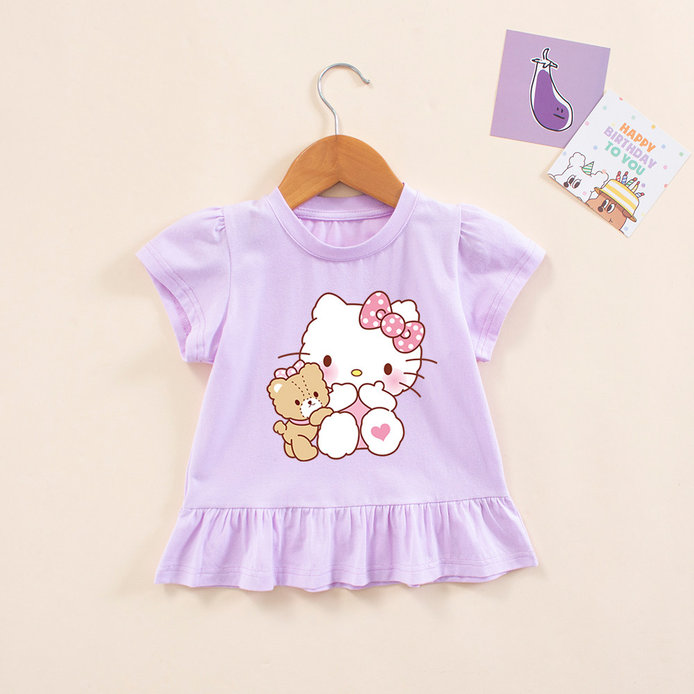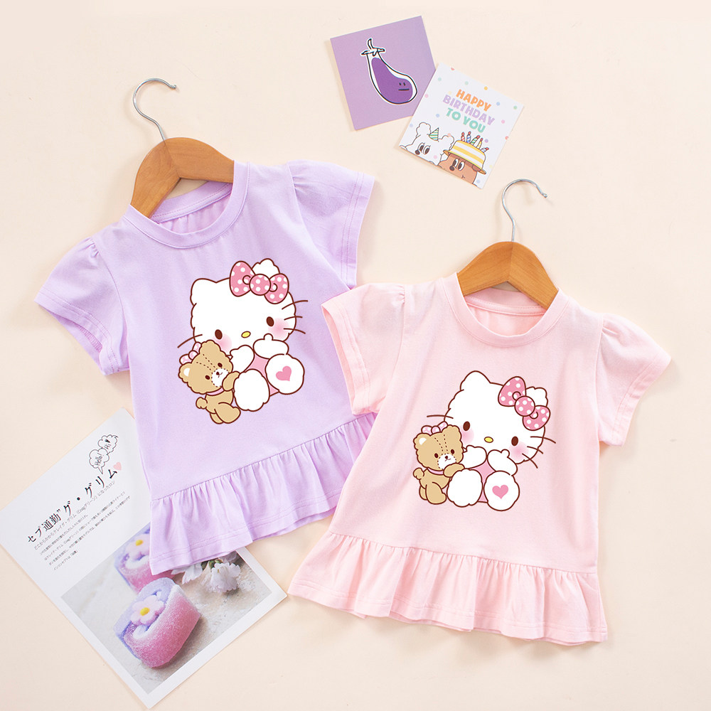 女童短袖裙式t恤夏装猫咪儿童纯棉上衣夏季宝宝女孩小猫图案衣服