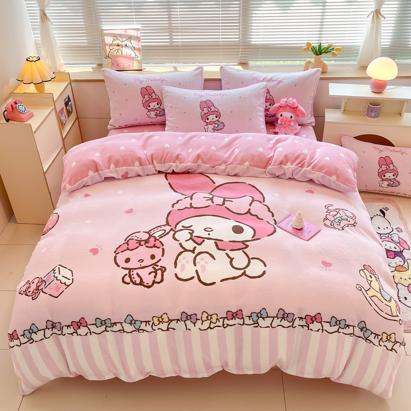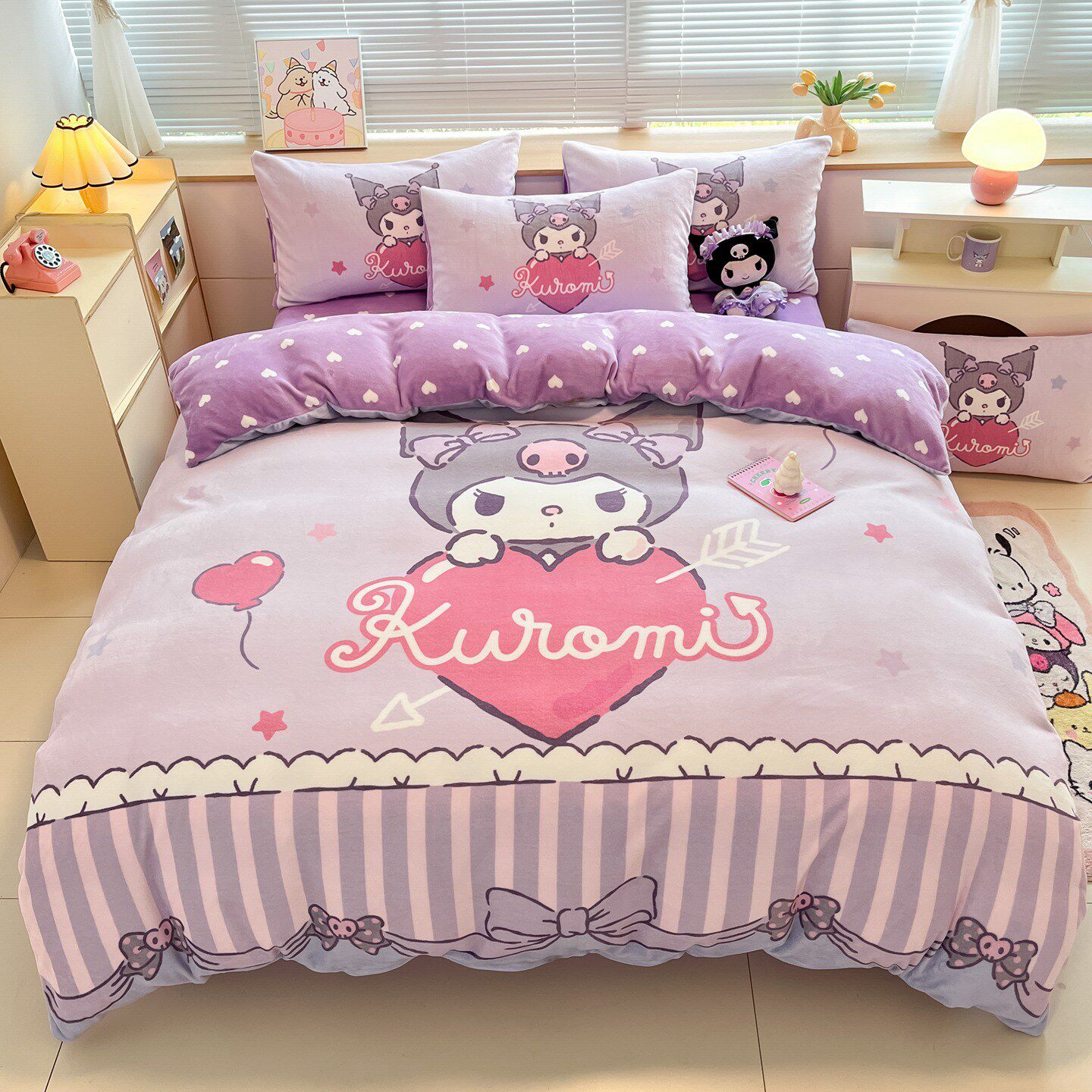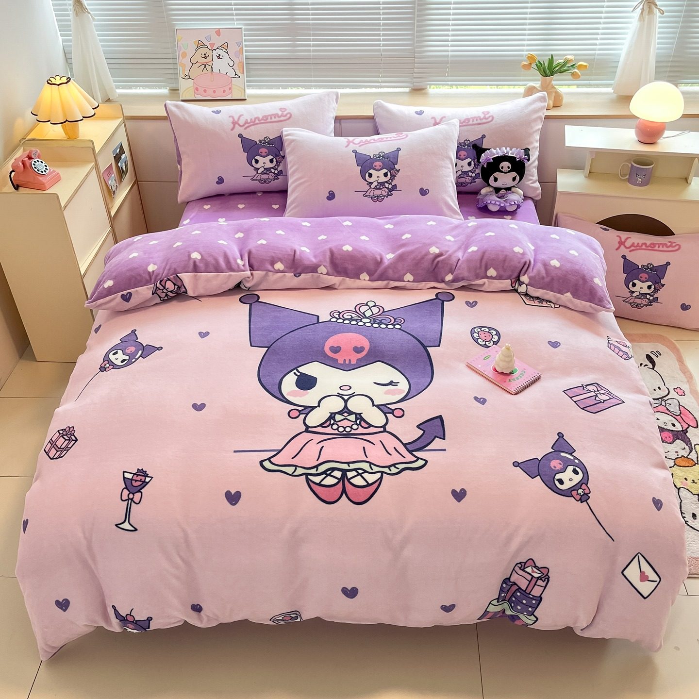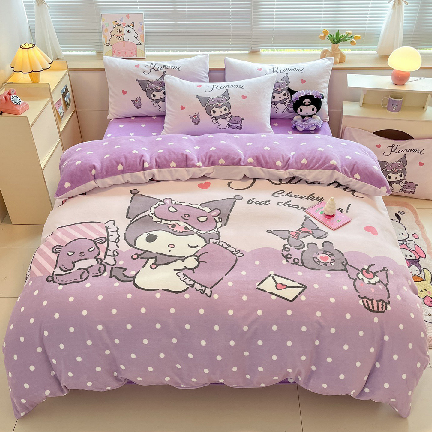 库洛米冬季加厚牛奶绒被套单件双面加绒儿童被罩珊瑚绒床上四件套