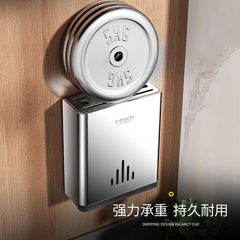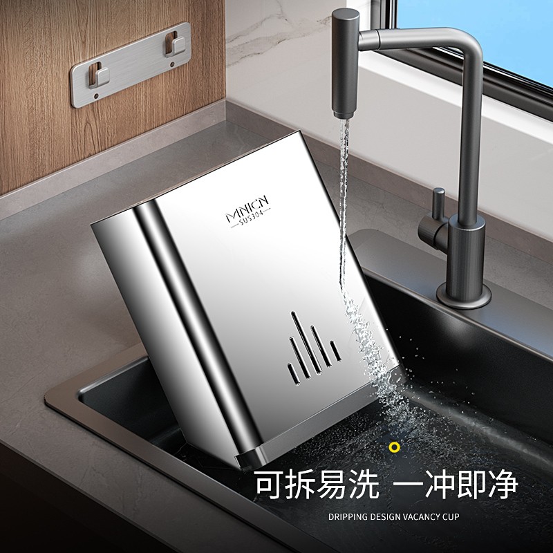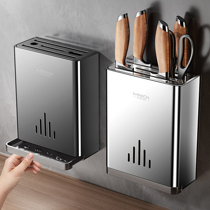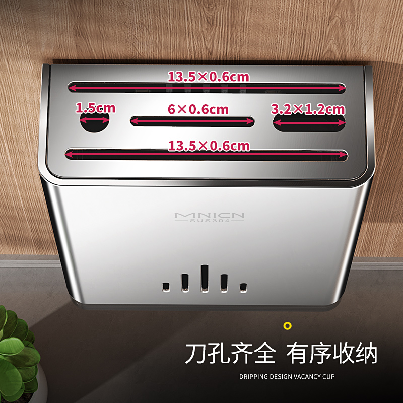 304不锈钢菜刀置物架厨房壁挂式免打孔刀具收纳架沥水筷子筒刀架
