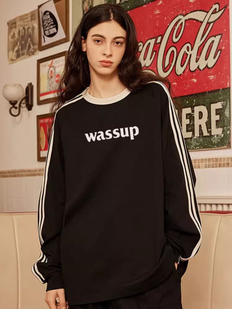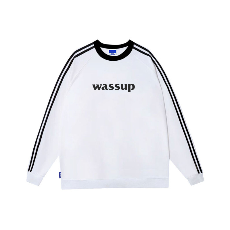 WASSUP卫衣女美式三条杠圆领加绒厚秋冬宽松纯棉长袖上衣2025新款
