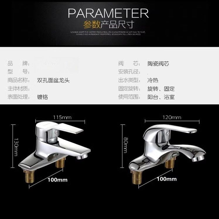 面盆单把双孔混水阀双联 黄铜阀体洗脸盆冷热水龙头
