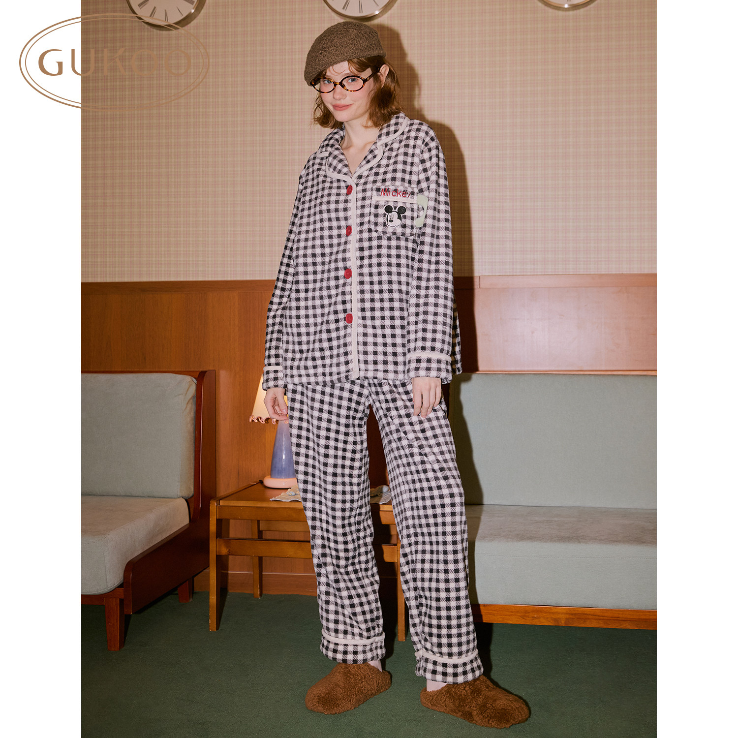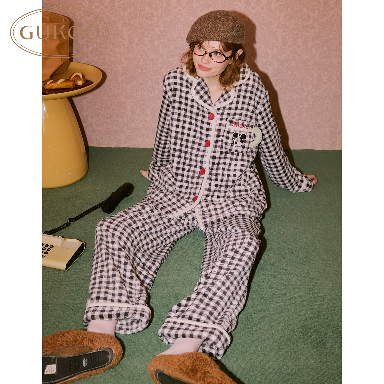 Gukoo/果壳睡衣冬季迪士尼联名新款格子简约保暖女士家居服套装D